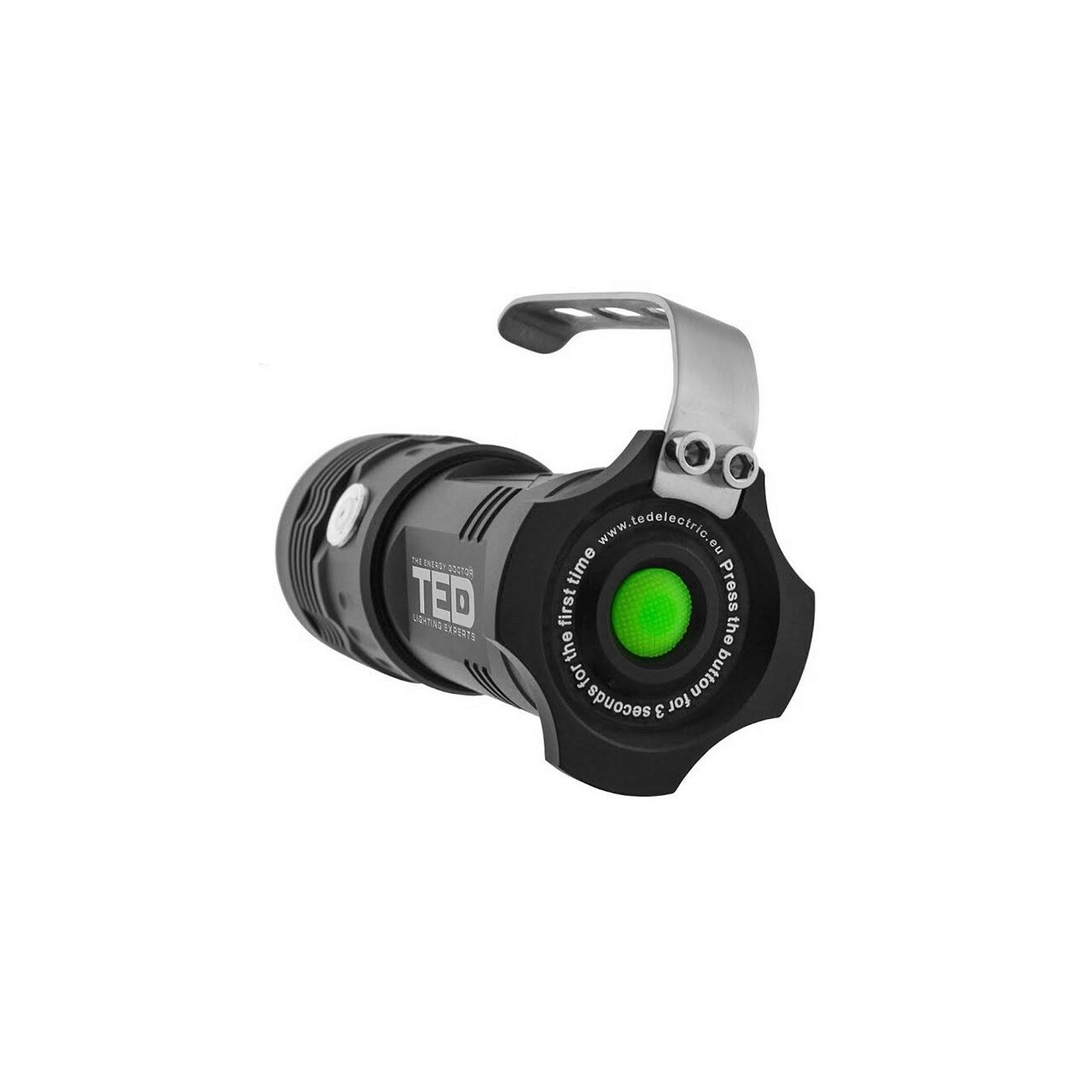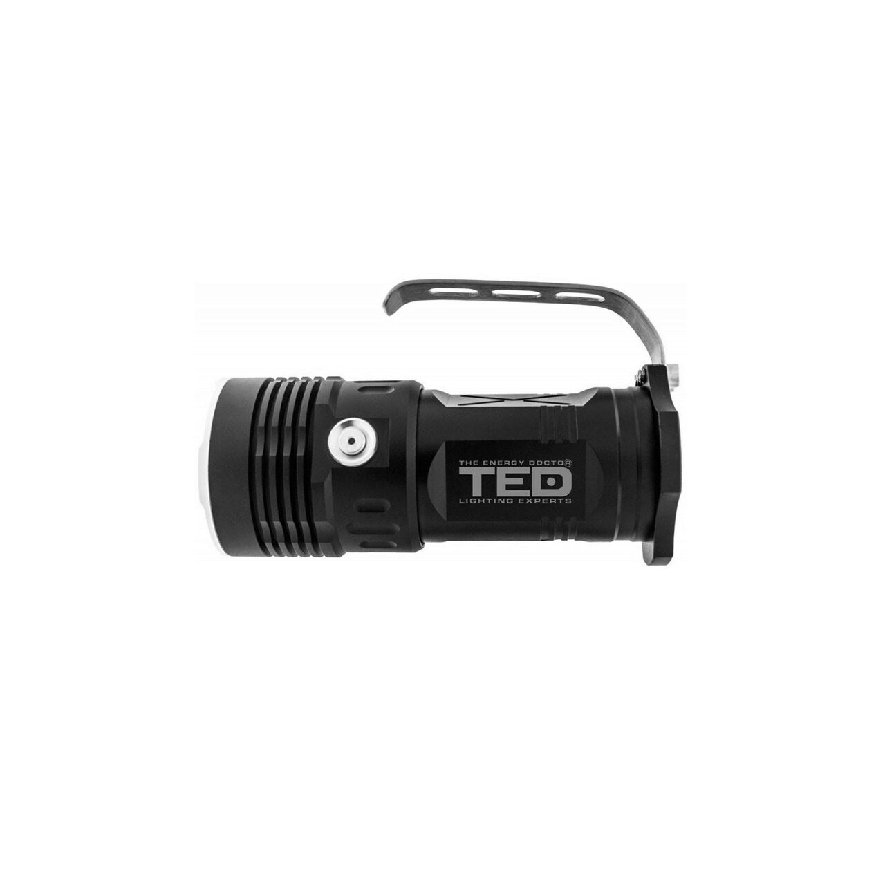 Lanterna metalica TED Electric, 3 LED-uri CREE cu o putere totala de 30W, include 4 acumulatori 18650 Li-Ion si cablu de incarcare micro USB. Carcasa aluminiu, grad protectie IP65.