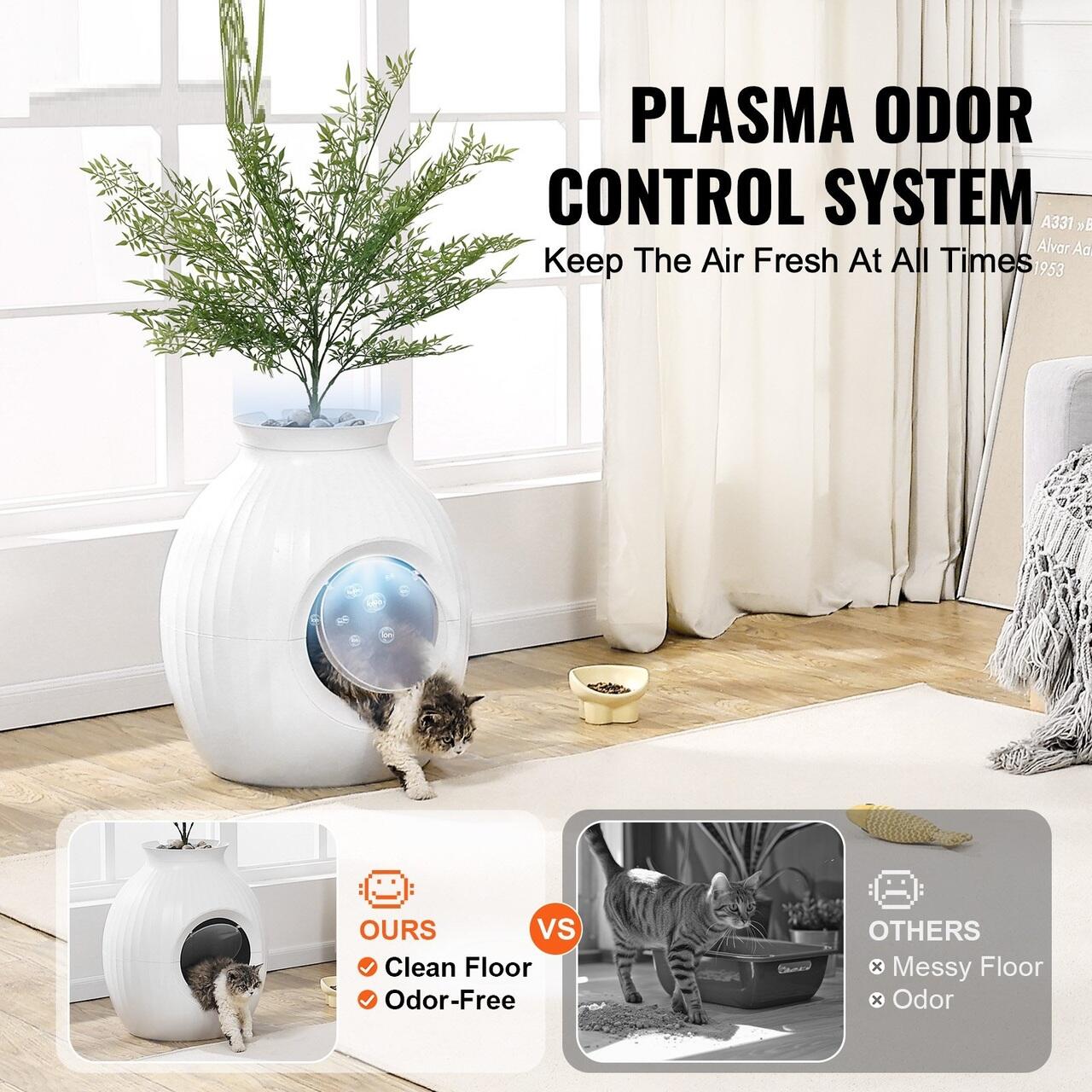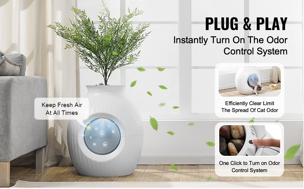 Minimizeaza eficient mirosurile: Cu sistemul de control al mirosurilor cu plasma, aceasta cutie de gunoi pentru pisici poate reduce eficient mirosul urinei si fecalelor de pisica, reduce la minimum raspandirea mirosului in camera si aduce aer proaspat si curat pentru tine si familia ta.