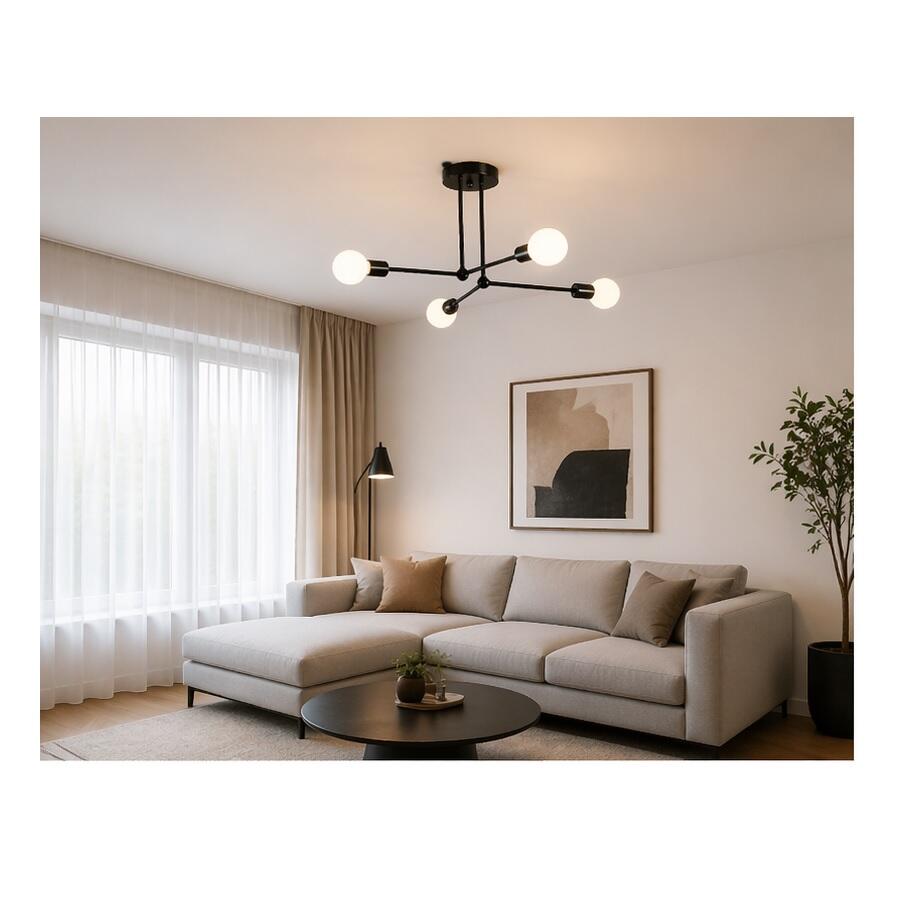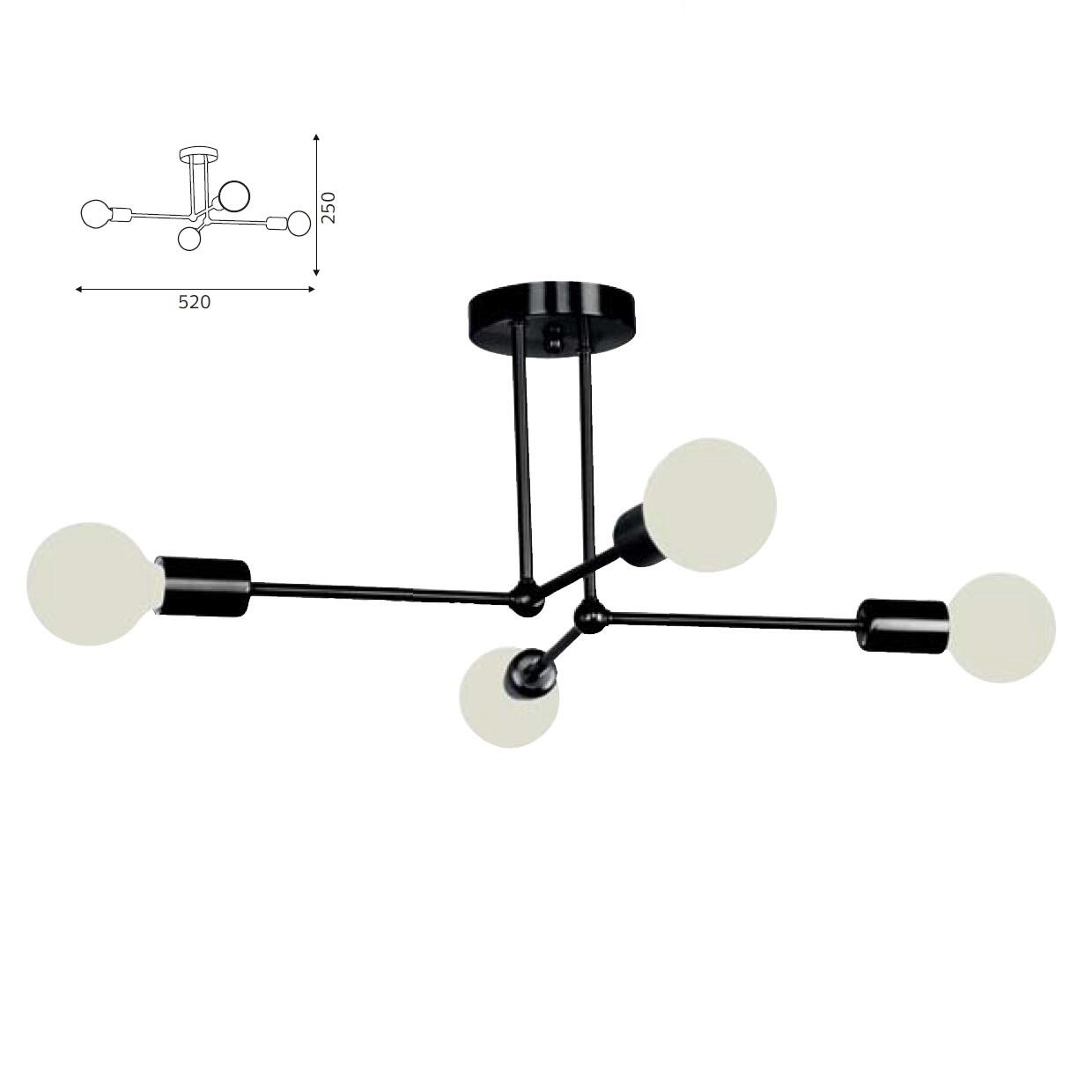 Lustra vintage 4 x E27, Negru, IP20, 250 x 520 mm, max 4 x 18 W
