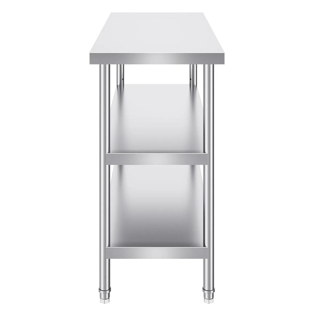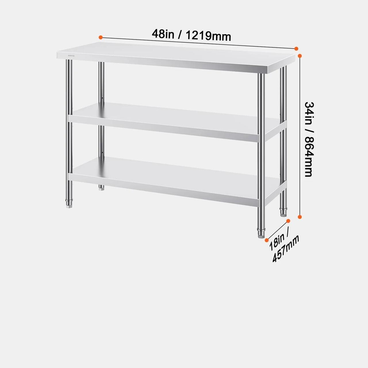 Otel inoxidabil de inalta calitate: aceasta masa de lucru, care masoara 18 x 48 x 34 inci, este fabricata din otel inoxidabil SUS201 pentru blat, rafturi si picioare. Ofera rezistenta superioara la rugina, un aspect elegant si o suprafata neteda care este usor de curatat cu o simpla stergere. Certificat NSF, indeplineste standarde stricte de sanatate publica, asigurand protectie de lunga durata pentru sanatatea dumneavoastra.