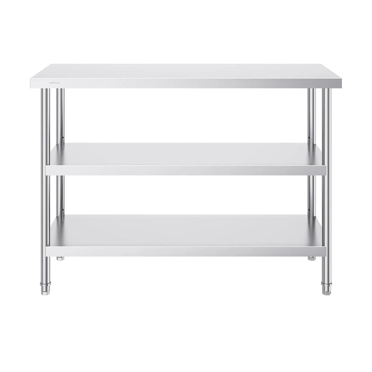 Masa de lucru Inox, pentru preparare alimente, 457 x 1219 x 864 mm, 2 x rafturi