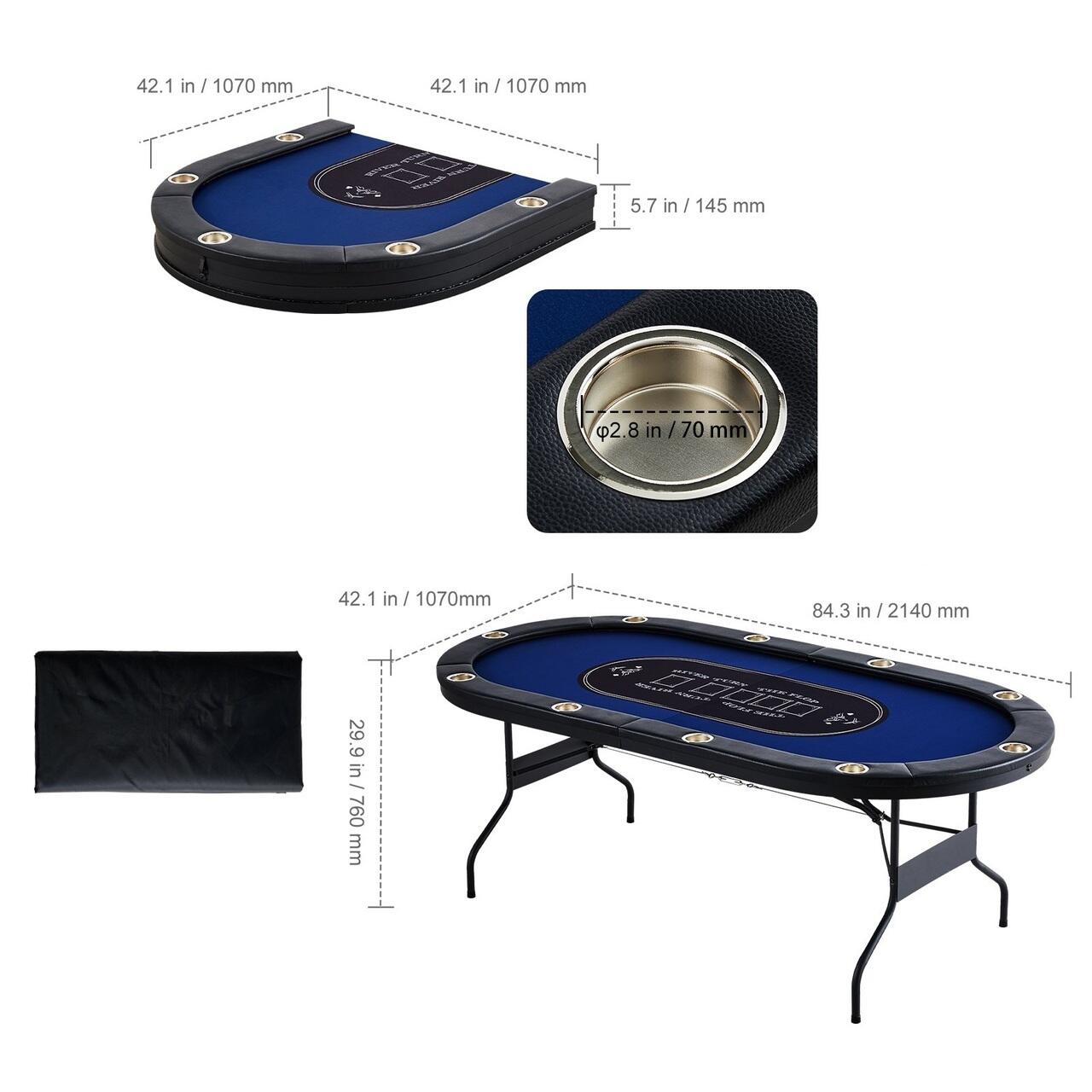 Masa de poker mare: Aceasta masa de poker de dimensiuni perfecte gazduieste pana la 10 jucatori simultan, facand-o ideala pentru intalniri de familie, distractie cu prietenii, jocuri de bar si multe altele. Experienta de joc confortabila si convenabila va va face sa va simtiti ca si cum ati fi intr-un cazinou din Las Vegas, permitandu-va sa va bucurati de jocuri precum Texas Hold'em si alte jocuri de carti dupa pofta inimii.