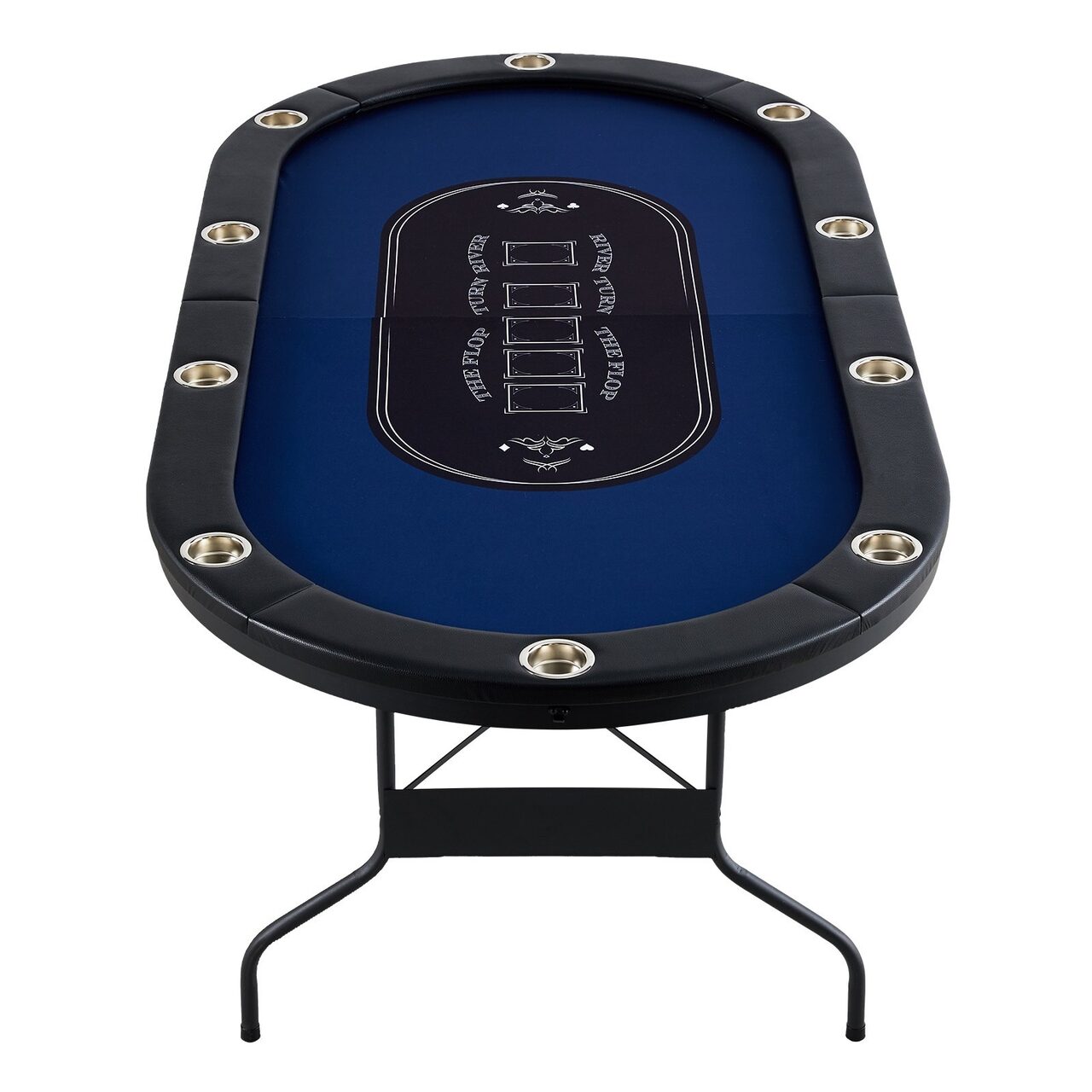 Masa de poker pliabila, 10 jucatori, sine captusite, suporturi pentru pahare din otel inoxidabil, 2140x1070x760 mm