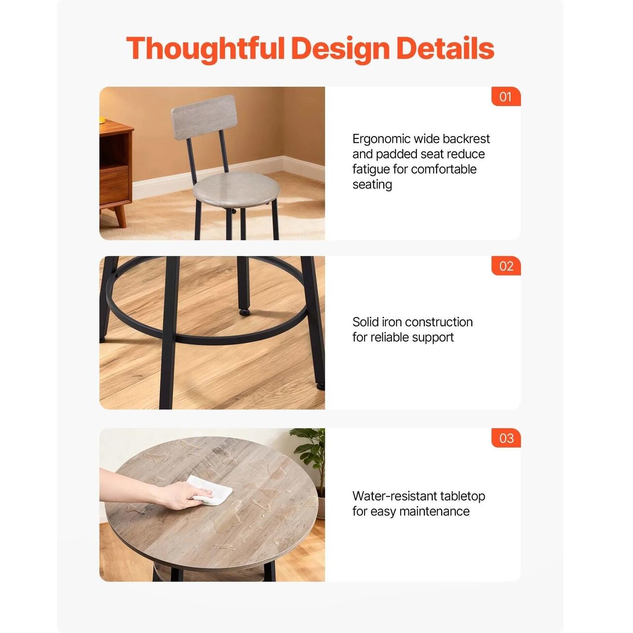 Optimizarea spatiului: Impreuna cu un set de scaune pentru doua persoane, aceasta masa de bucatarie cu inaltime de blat si scaun de bar are un design compact, care economiseste spatiu. Foloseste cu usurinta colturile neutilizate sau un loc din sufragerie, creand un coltisor de bar confortabil.