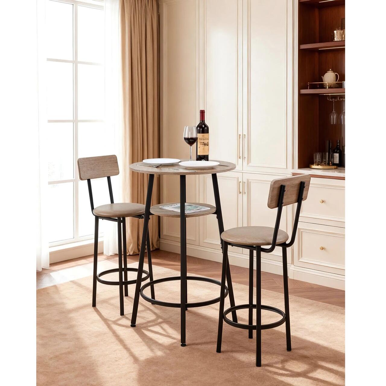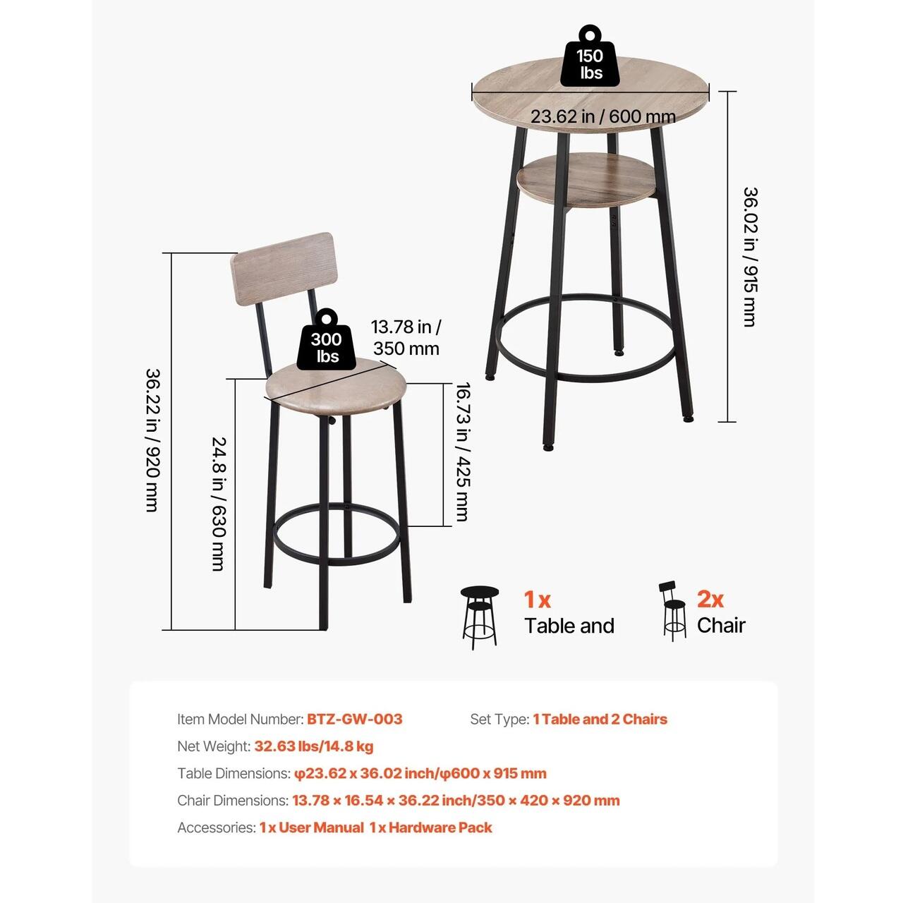 Set masa si scaune 3 piese: Masa noastra dreptunghiulara de pub cu scaun include 1 masa (φ600 x 915 mm) si 2 scaune cu spatar (350 x 420 x 920 mm) pentru doua persoane. Are un raft circular cu latimea de 378 mm in centru.
