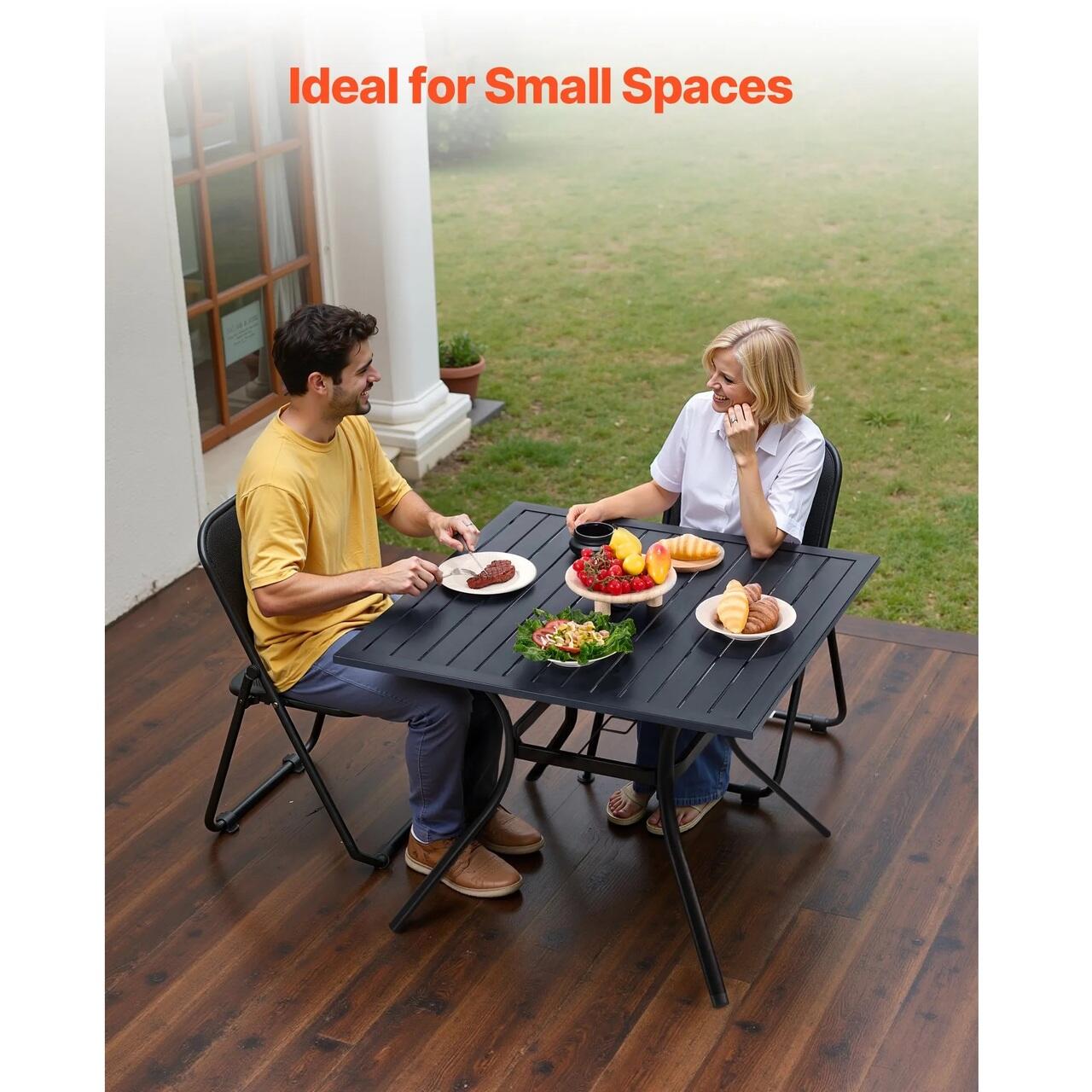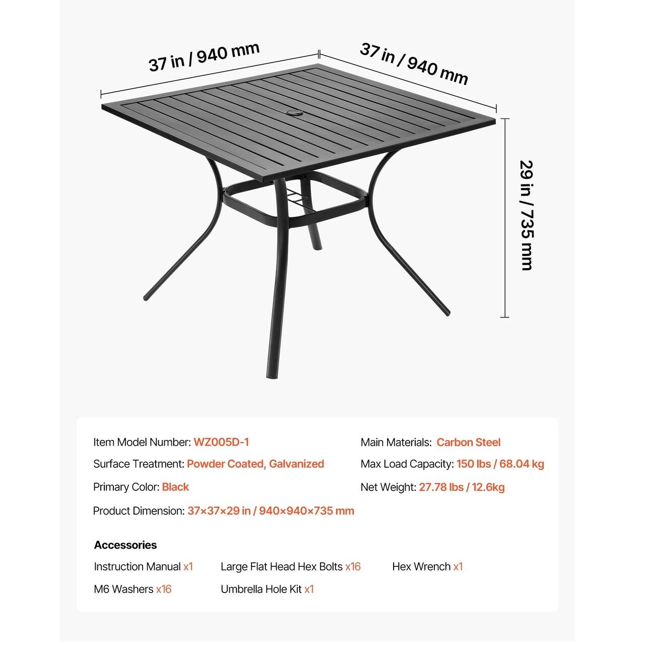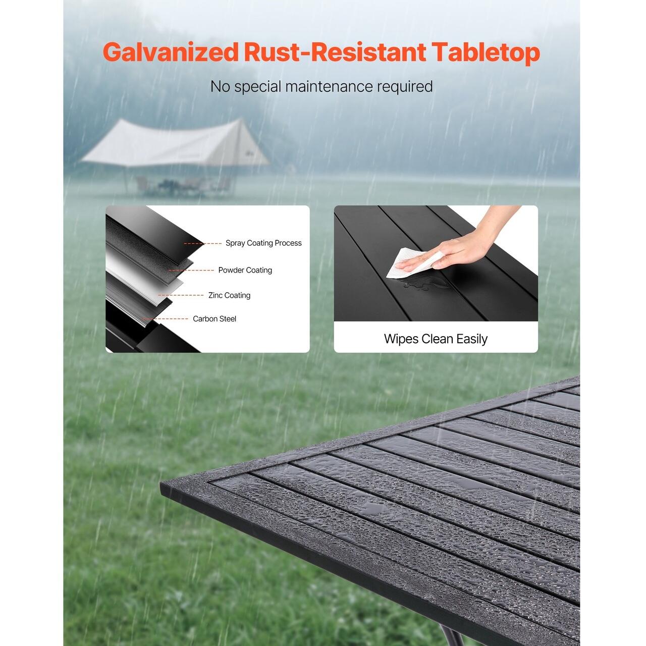 Rezistent la rugina si intemperii: Fabricat din otel carbon galvanizat, blatul mesei de terasa este construit pentru a fi longeviv si a rezista la conditii exterioare dure. Pur si simplu stergeti grasimea sau petele cu o carpa umeda - nu necesita intretinere speciala.