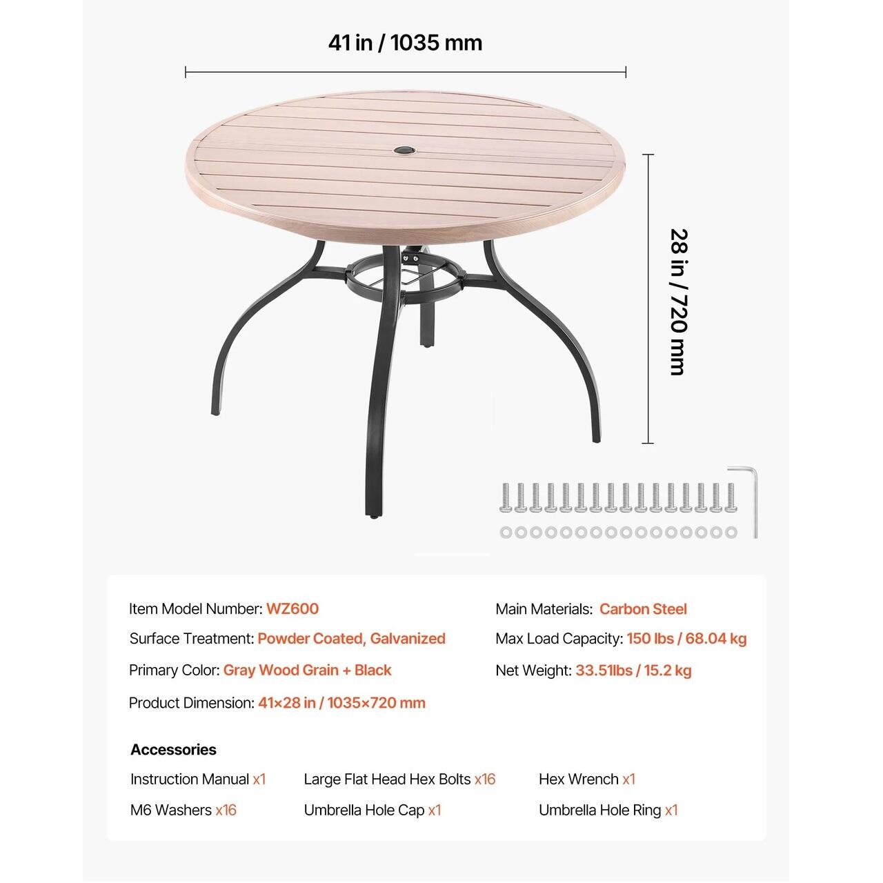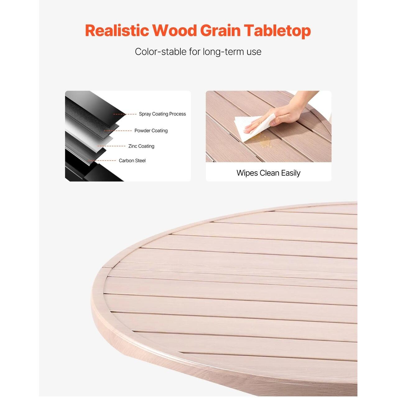 Rezistent la rugina si intemperii: Fabricat din otel carbon galvanizat, blatul mesei de terasa este construit pentru a fi longeviv si a rezista la conditii exterioare dure. Pur si simplu stergeti grasimea sau petele cu o carpa umeda - nu necesita intretinere speciala.