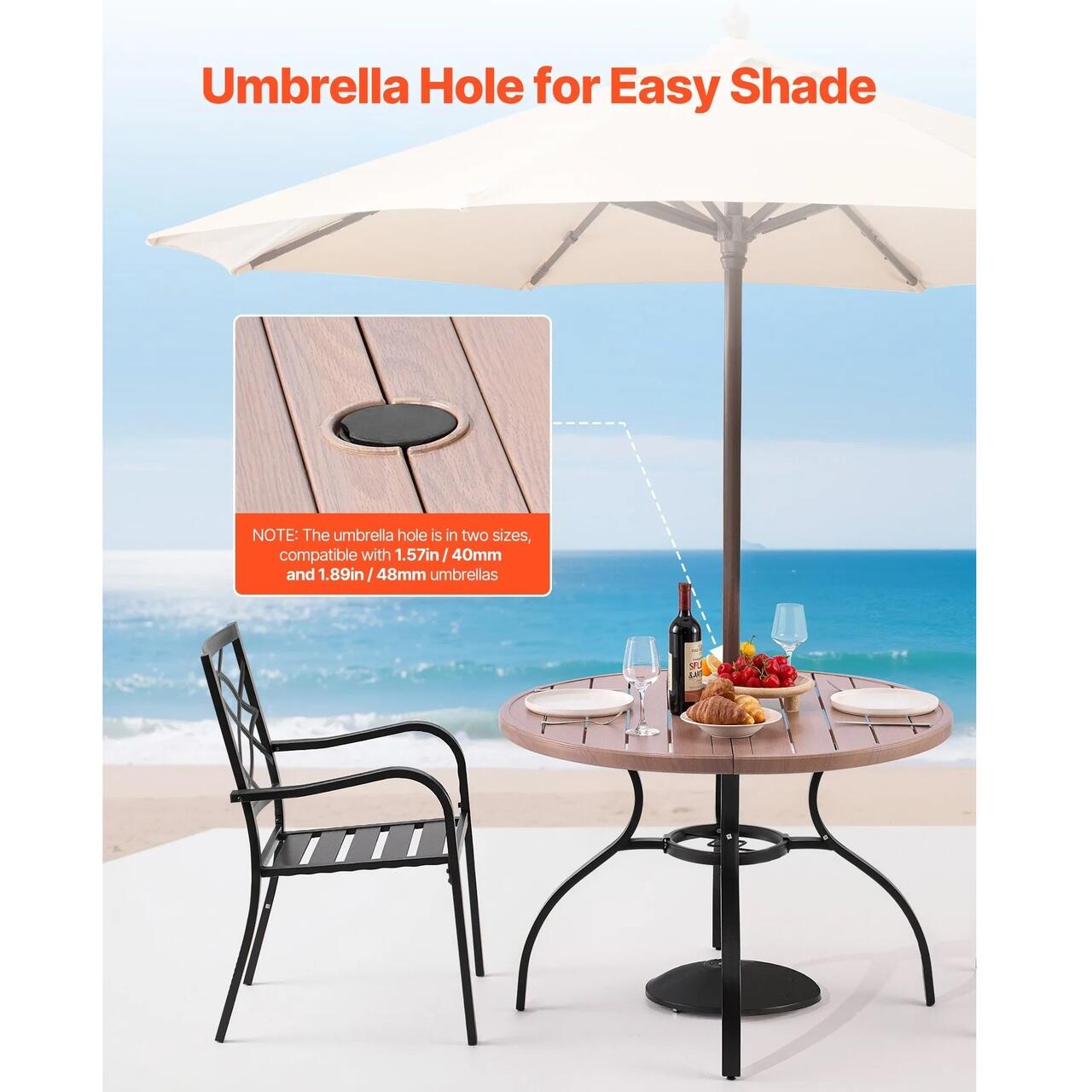 Design cu orificiu pentru umbrela: Aceasta masa de terasa pentru exterior include un orificiu pentru umbrela de 38 mm. Daca preferati sa nu utilizati inelul pentru umbrela, puteti monta o umbrela de terasa cu un diametru al manerului de pana la 48 mm, oferind confort atat la soare, cat si la ploaie.
