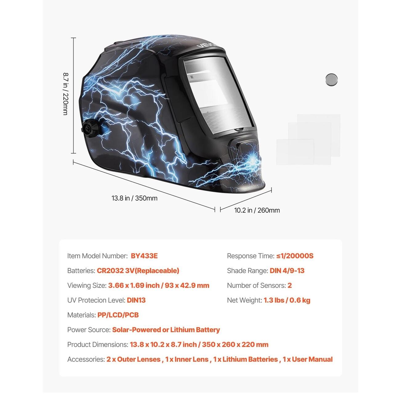 Intunecare automata in milisecunde: Echipata cu 2 senzori inteligenti pentru arc, hota noastra de sudura se intuneca automat in doar 1/20000 secunde - filtrand lumina daunatoare si intensa, reducand stralucirea arcului, imbunatatind claritatea vizuala si protectia ochilor.