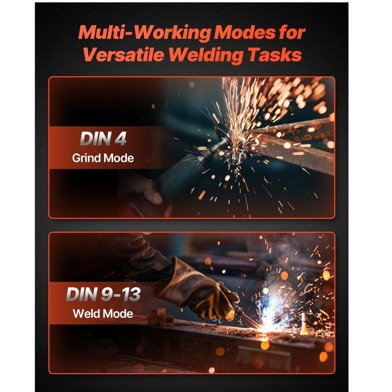 Nuanta reglabila: Masca noastra de sudura True Color dispune de niveluri de nuanta DIN reglabile — DIN 4 (Mod slefuire) si DIN 9–13 (Mod sudare). Comutati cu usurinta intre modurile de lucru pentru a spori eficienta si siguranta in timpul lucrarilor de sudura si slefuire.