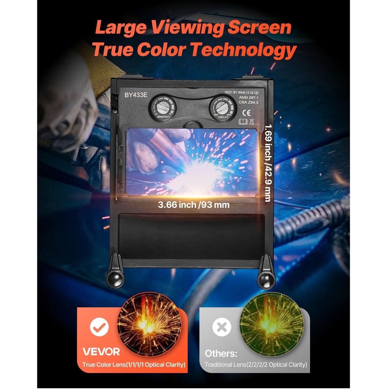 Vizualizare in culori reale: Cu un ecran de vizualizare mare de 93 x 43 mm (3,66" x 1,69"), tehnologie imbunatatita in culori reale si claritate optica 1/1/1/1, casca de sudura va ofera o vedere clara, precisa si naturala pentru o sudura sigura si precisa.