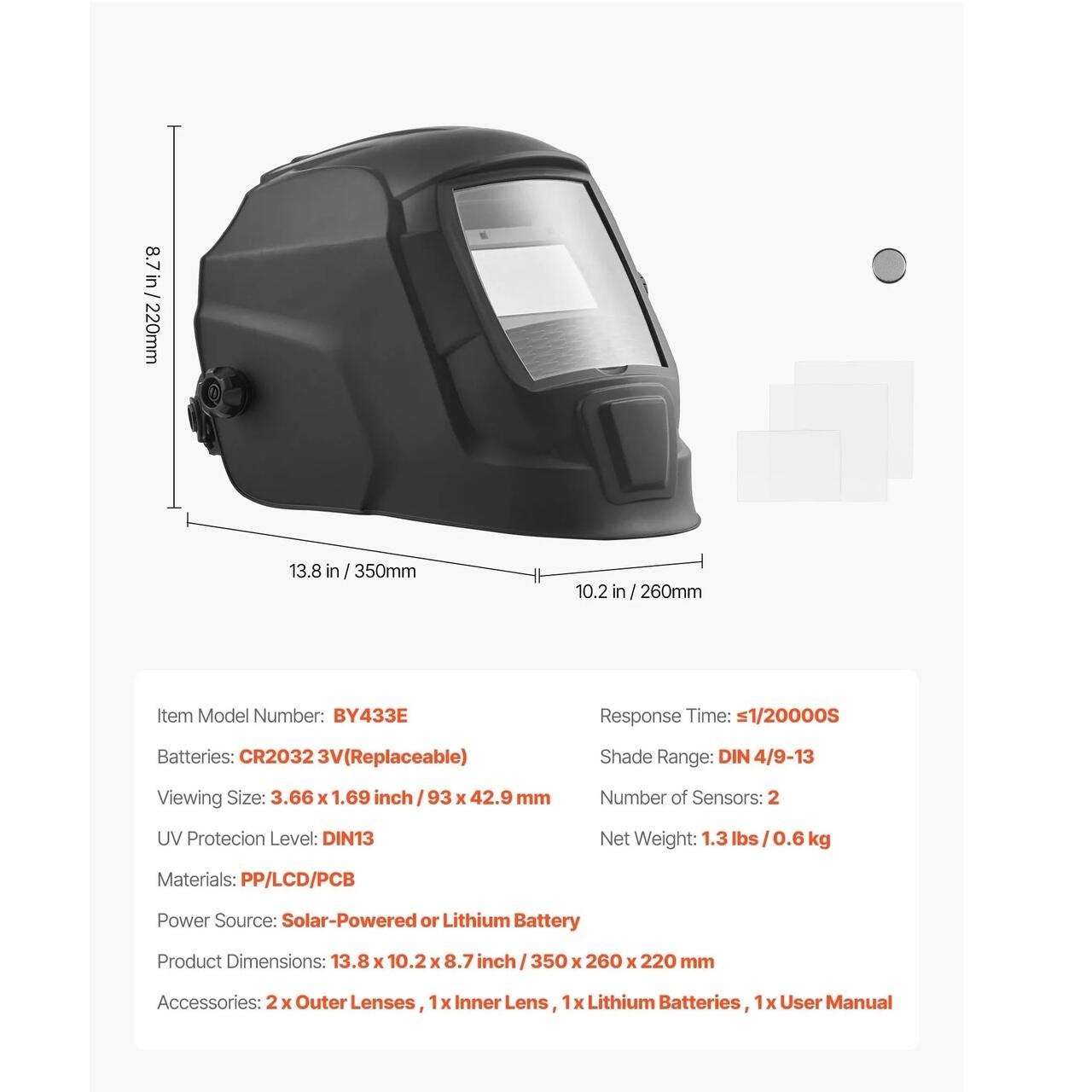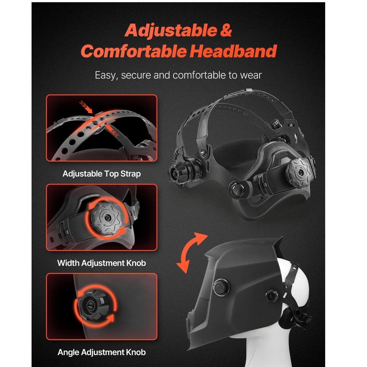 Potrivire perfecta: Avand o curea superioara reglabila, impreuna cu butoane de reglare a latimii si unghiului, aceasta casca de sudura ofera o potrivire personalizata si confort. Fabricata din materiale rezistente la caldura si impact, blocheaza eficient scanteile pentru a va proteja fata si ochii.