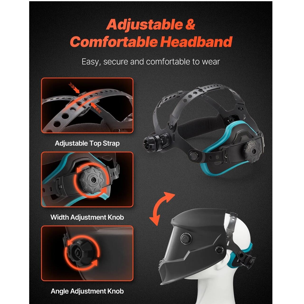 Potrivire confortabila: Avand o curea superioara reglabila, impreuna cu butoane de reglare a latimii si unghiului, aceasta casca de sudura ofera o potrivire personalizata si confort. Fabricata din materiale rezistente la caldura si impact, blocheaza eficient scanteile pentru a va proteja fata si ochii.