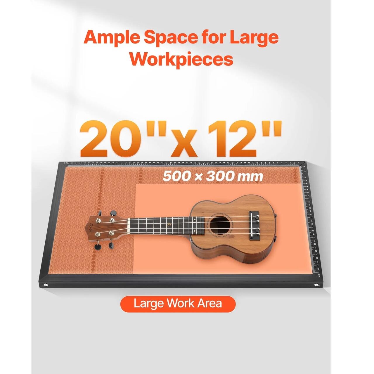 Capacitate versatila de gravare: O zona de lucru spatioasa de 50 x 30 cm va permite sa gravati cu usurinta semne mari, panouri de mobilier sau loturi de etichete din piele. Masina noastra de taiat cu laser CO2 include o axa rotativa pentru a sustine obiecte cilindrice, ideala pentru mestesuguri si multe altele.