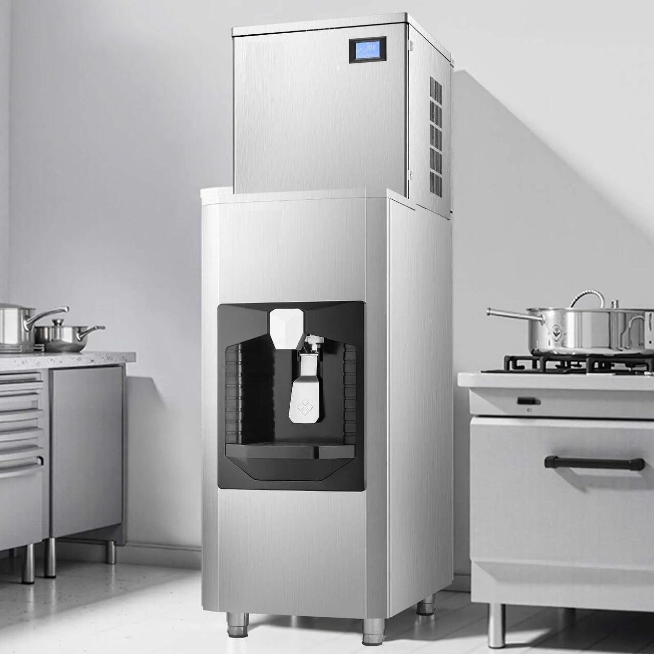 Usor de curatat: Aparatul comercial de gheata dispune de o functie de autocuratare cu o singura atingere, oferindu-va un mediu curat si sanatos pentru producerea ghetii si asigurand curatarea cuburilor de gheata.