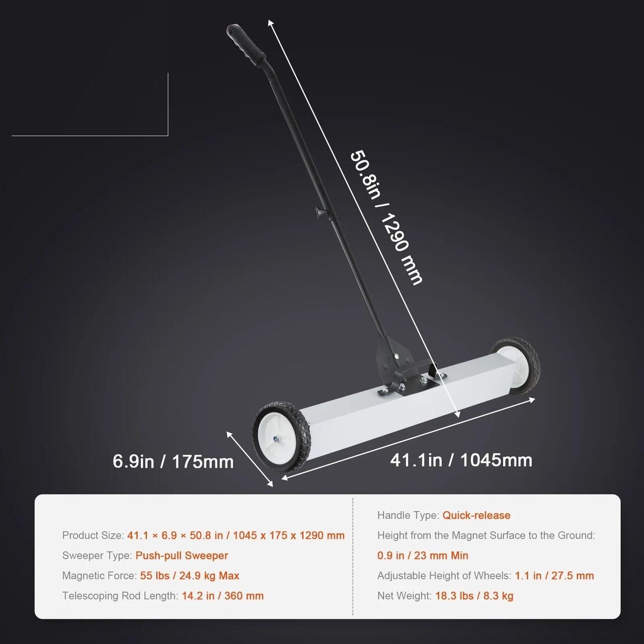 Performanta de lunga durata: Fabricata din materiale de inalta calitate, cum ar fi aluminiu, plastic, magnet si fier, matura magnetica tip push-pull este construita pentru a rezista rigorilor santierelor solicitante. Durabilitatea sa garanteaza performanta fiabila pe termen lung, oferindu-va un instrument valoros pentru sarcinile de curatenie continue.