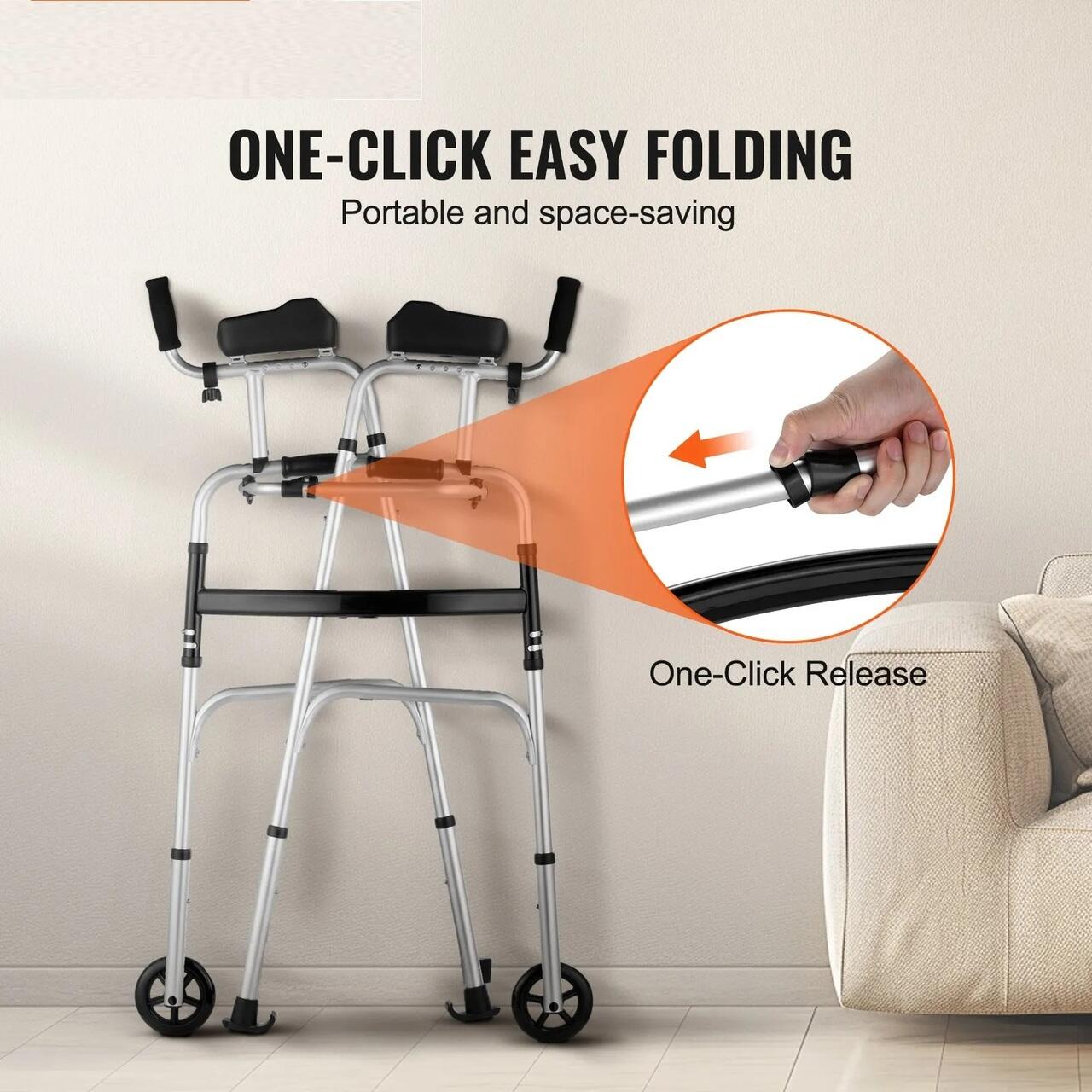 Functionalitate versatila 2 in 1: Mergatorul pliabil dispune de 2 cotiere detasabile, oferind atat moduri fixe, cat si interactive pentru utilizare versatila in interior si in exterior. Poate fi folosit si ca ajutor pentru ridicare in picioare, ajutor pentru mers si bara de sustinere pentru toaleta, fiind ideal pentru seniori, persoane cu dizabilitati si persoane cu mobilitate limitata.