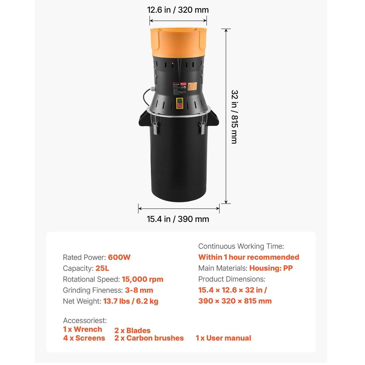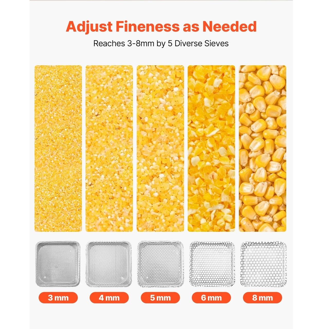 Macinare puternica de mare viteza: Un motor de 600 W care atinge 15.000 RPM functioneaza cu un orificiu de alimentare de 9,8 in si lame galvanizate ascutite, permitand acestei mori de cereale sa ofere o macinare eficienta si stabila, cu vibratii reduse in timpul functionarii pe termen lung.