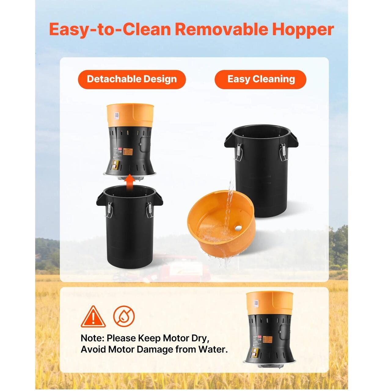 Curatare usoara: Cu o palnie detasabila si un orificiu de alimentare, aceasta masina de tocat cereale este usor de spalat si uscat, mentinand apa departe de motor pentru a prelungi durata de viata a masinii.