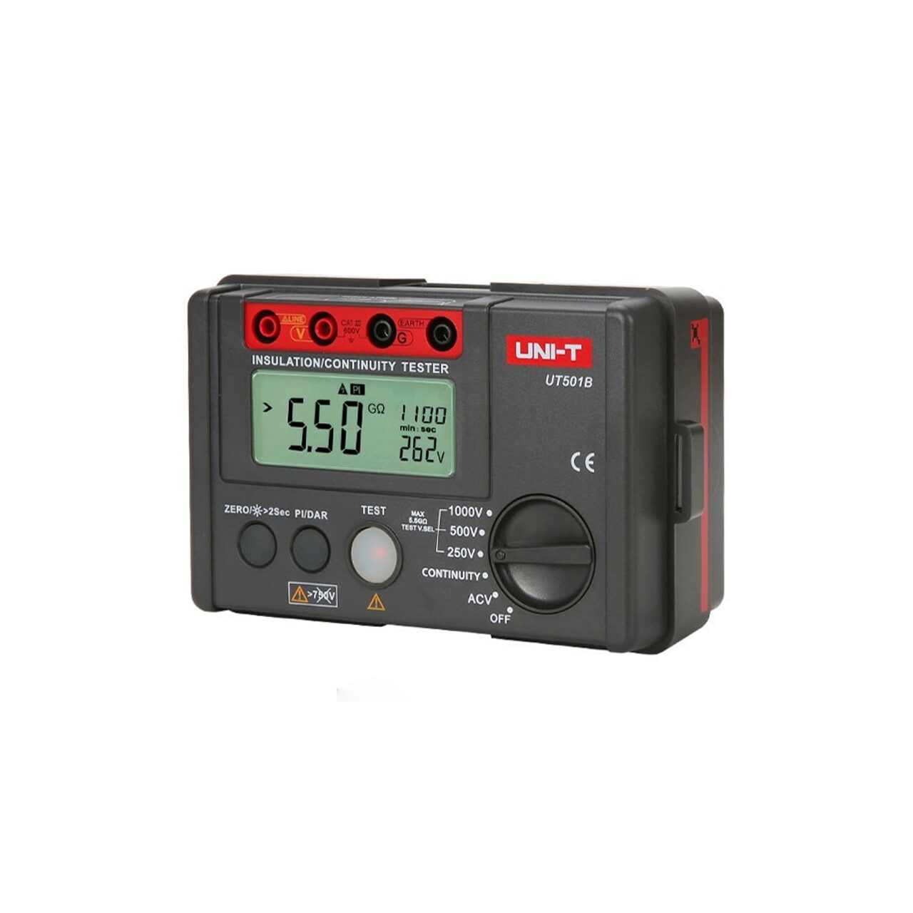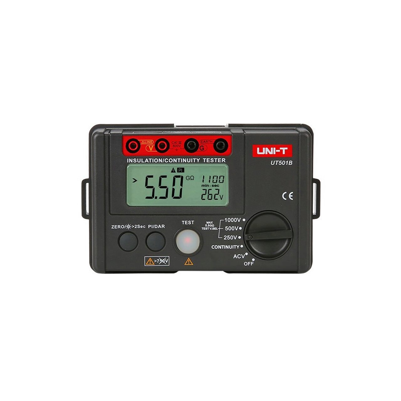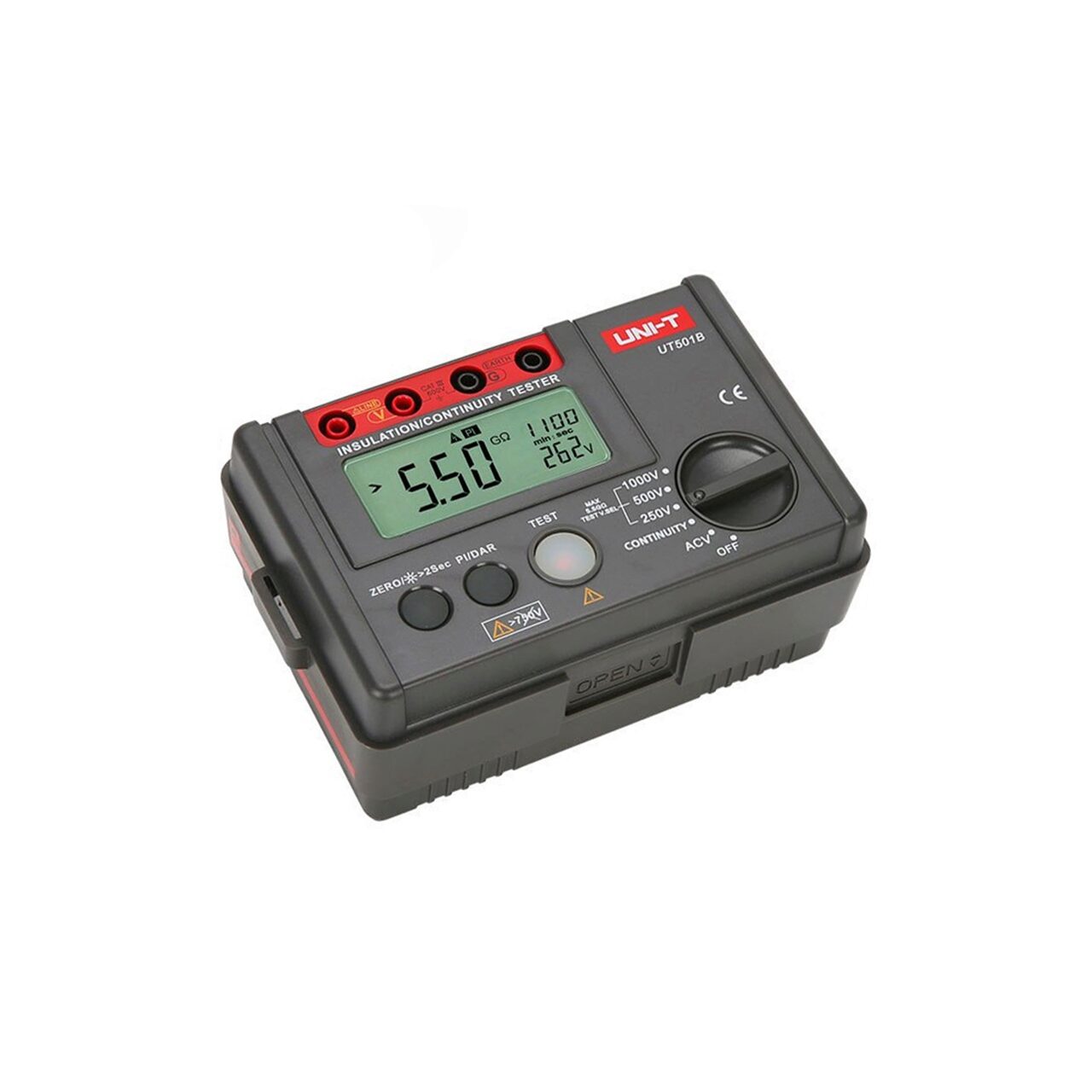 UT501B este proiectat cu un design nou si poate masura rezistenta izolatiei, rezistenta scazuta, tensiune AC etc. Are un grad inalt de precizie, performanta stabila, functionare usoara si fiabilitate. Se foloseste pentru masurat izolatii, masini electrice, cabluri, comutatoare, aparate electrice - este instrumentul ideal pentru intretinerea, testarea si inspectia echipamentelor electrice.