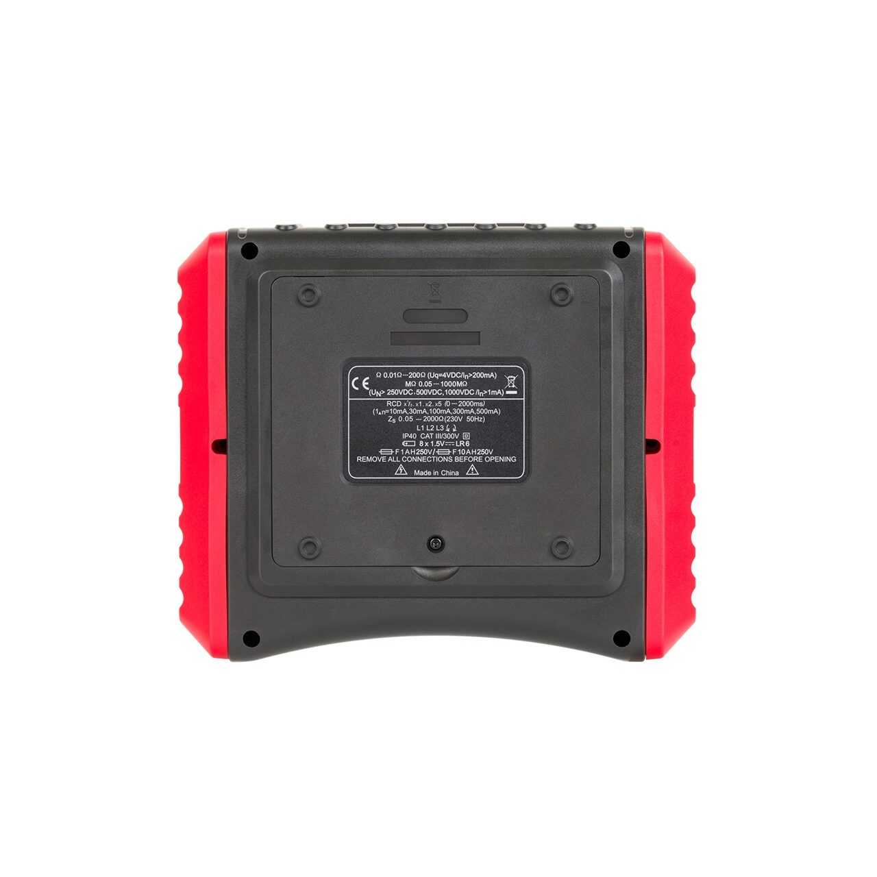 GAMA DE MĂSURARE Rezistența de izolație - tensiunea de testare: • 250V: 0,05 MOhm ~ 250 MOhm ± (5% + 5) • 500V: 0,05 MOhm ~ 500 MOhm ± (5% + 5) • 1000V: 0,05 MOhm ~ 1000 MOhm ± (5% + 5) Curent de testare: 0,9 ~ 1,1 mA Curent de scurtcircuit: <1,8 mA Testare curent rezidual Curenți de testare (In): 10 mA / 30 mA / 100 mA / 300 mA / 500 mA Tensiunea rețelei: 220V ± 10%; 45 ~ 65Hz Intervalele de timp de oprire: • pentru 1 In: 0 ~ 2000 ms ± (5% + 5) • pentru 1 In: 0 ~ 500 ms ± (5% + 5) • pentru 2 In: 0 ~ 200 ms ± (5% + 5) • pentru 5 In: 0 ~ 40 ms ± (5% + 5) Impedanță Tensiunea rețelei (L-E): 220V ± 10%; 45 ~ 65Hz Curent de testare / timp de testare: 20 A / 20 ms Domenii de măsurare: • 0,05 Ohm ~ 1,99 Ohm ± (5% + 5) • 2 Ohm ~ 19,9 Ohm ± (5% + 5) • 20 Ohm ~ 2000 Ohm ± (5% + 5) ALTE GAMME DE MĂSURARE Rezistență scăzută: 0,01 Ohm ~ 200 Ohm ± (2% + 5) Tensiune AC: 0 ~ 440V ± (2% + 3) Tensiune continuă: 0 ~ 440V ± (2% + 3) Frecvență: 20 Hz - 100 Hz (numai informativ) FUNCȚII SUPLIMENTARE Schimbarea manuală / automată a domeniilor de măsurare Testare secvență faze Indicator de baterie descărcată Avertizare de înaltă tensiune Ecran LCD cu lumină de fundal Buzzer Afișaj secundar Citire maximă: 9999 CARACTERISTICI GENERALE Alimentare: baterie 8 x 1,5 V (LR6) Afișaj: 125 x 37 mm Dimensiuni: 210 x 175 x 90 mm Greutate: 1000 g Inclus în colet: baterii, cabluri de testare, cablu de testare special, cleme de testare tip crocodil, sondă de testare