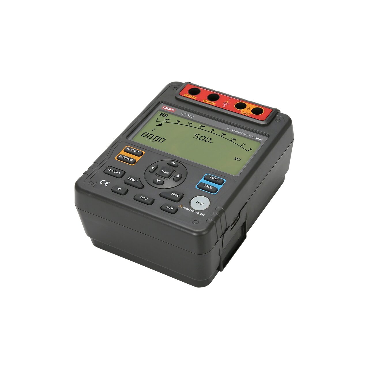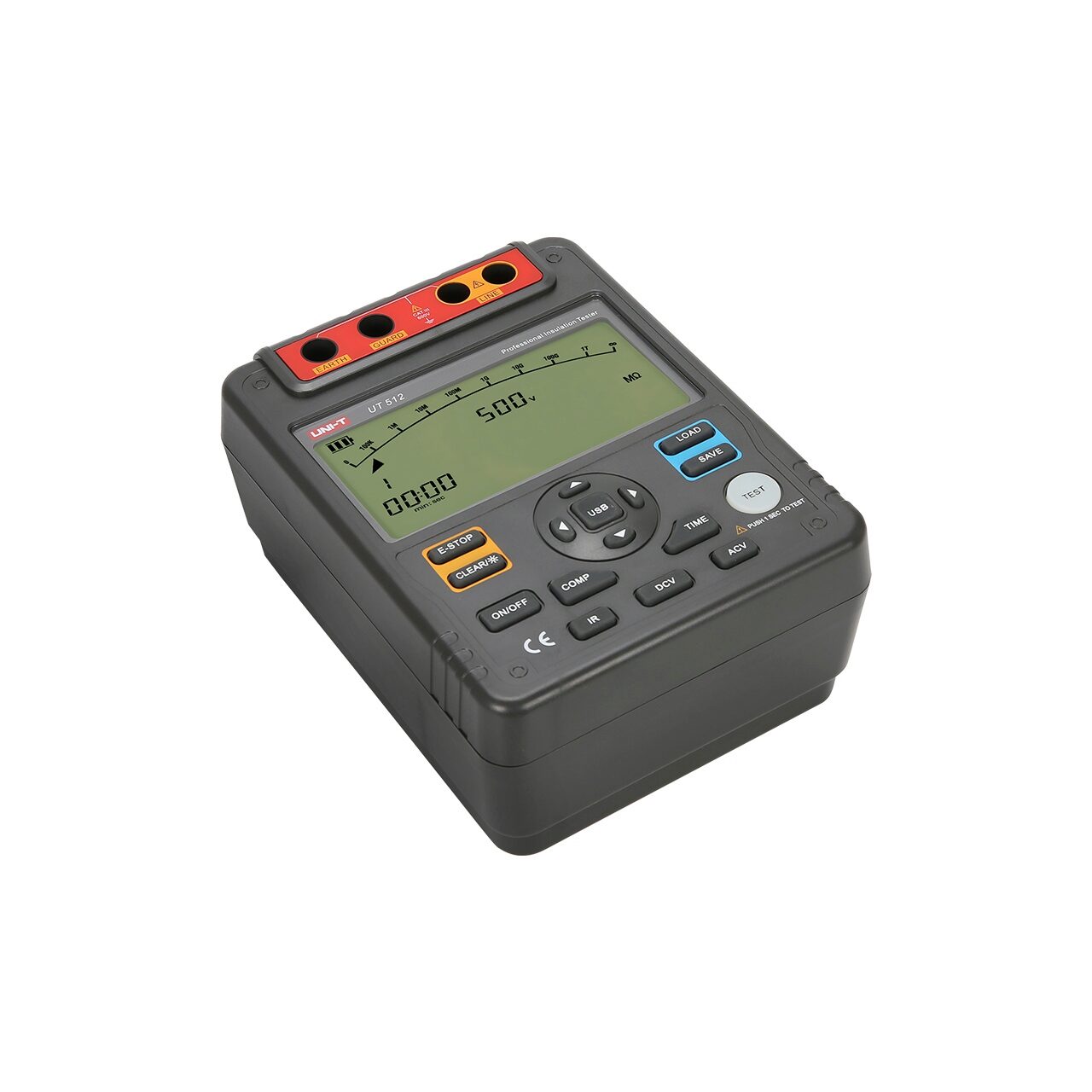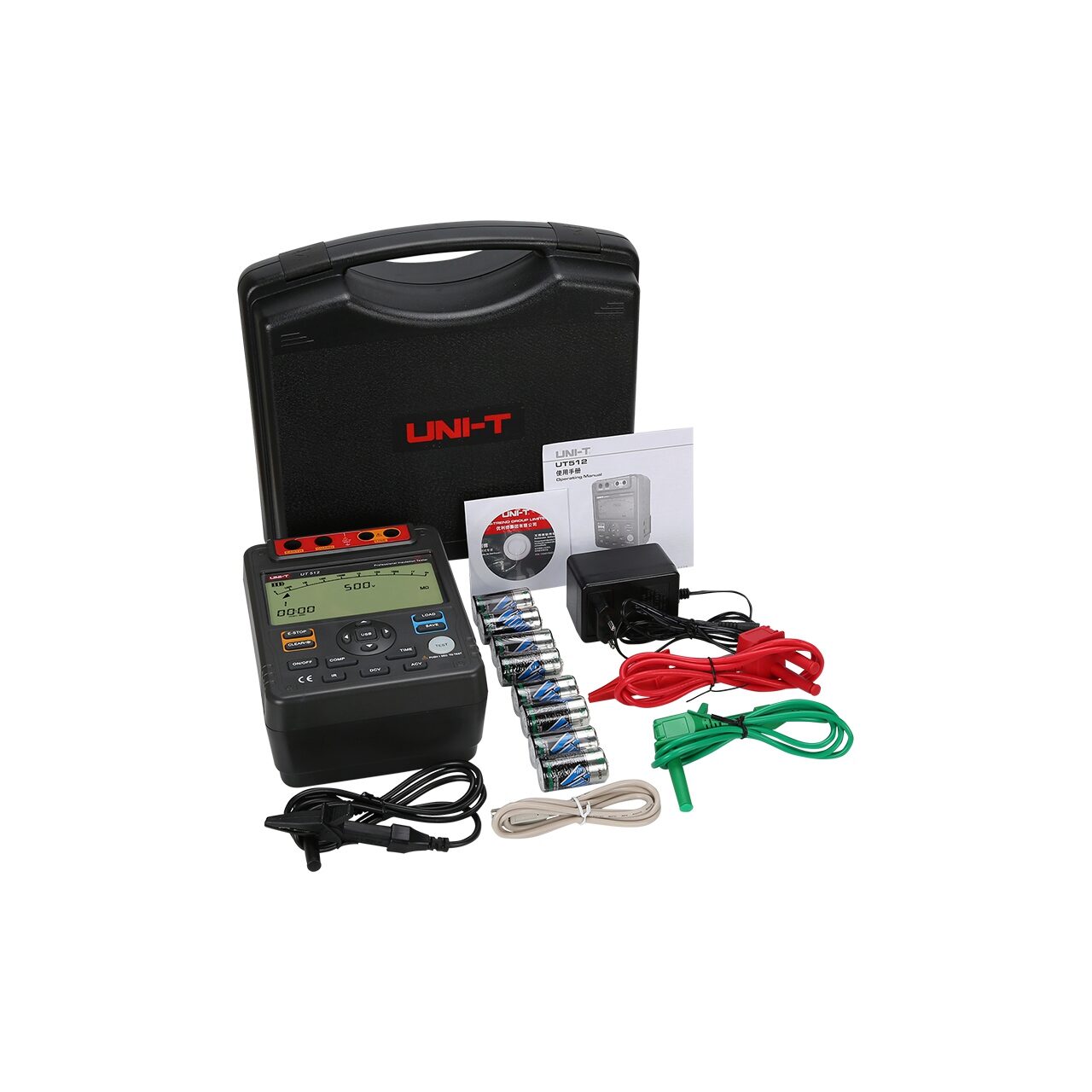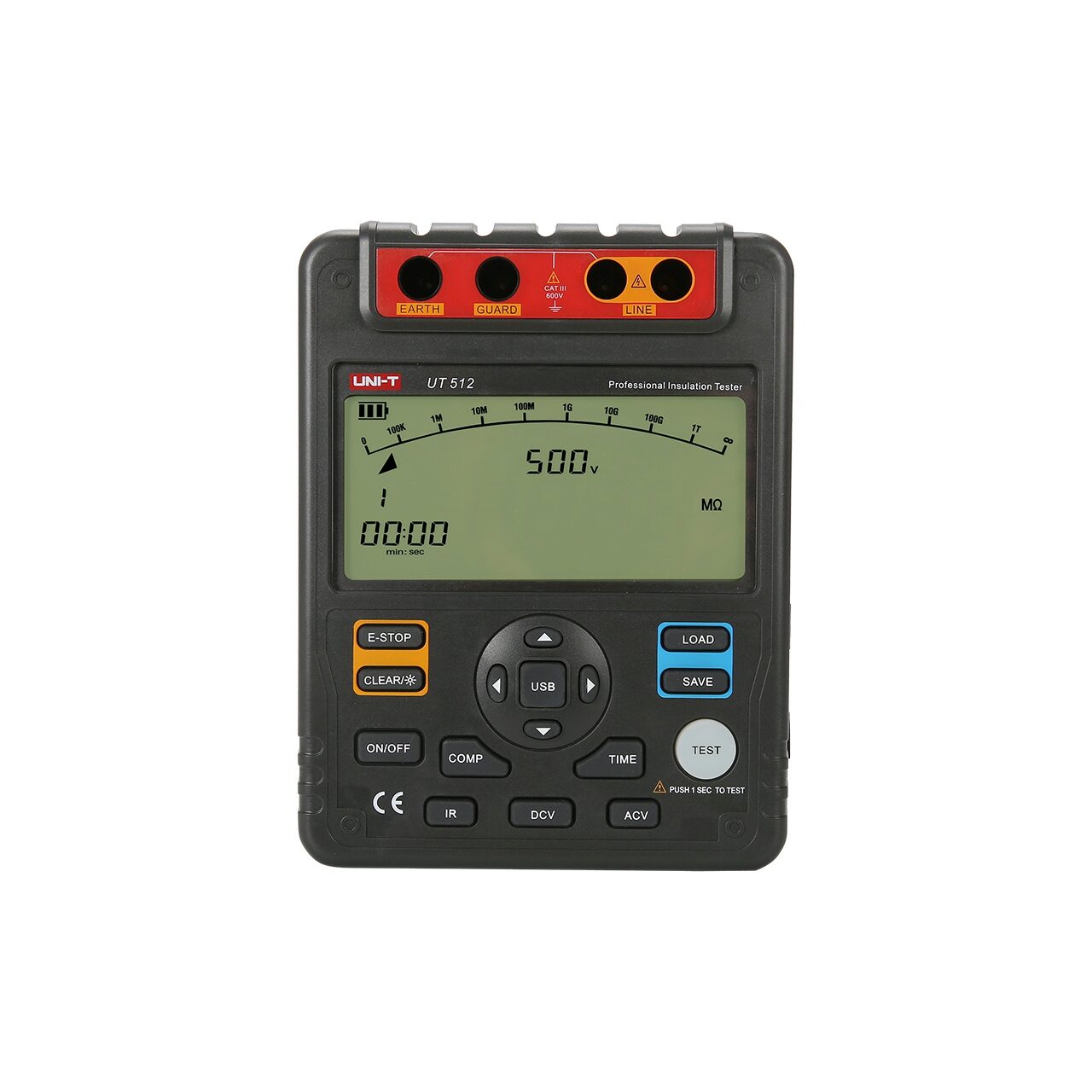 Multimetru pentru masurarea rezistentei de izolatie tip UT 512. Domeniul rezistentei de izolatie: 1 MOhm -10 GOhm Tensiunea de testare: 500V/1000V/1500V/2500V Tensiune DC: 600V Tensiune AC: 600V Temporizator: 15 min aprox. Afisare maxima: 9999 Alte caracteristici: Alimentare: 8 baterii 1.5V (R14) Dimensiune ecran LCD: 123 x 58 mm Greutate: 1.8 kg Dimensiuni: 202 x 155 x 94 mm