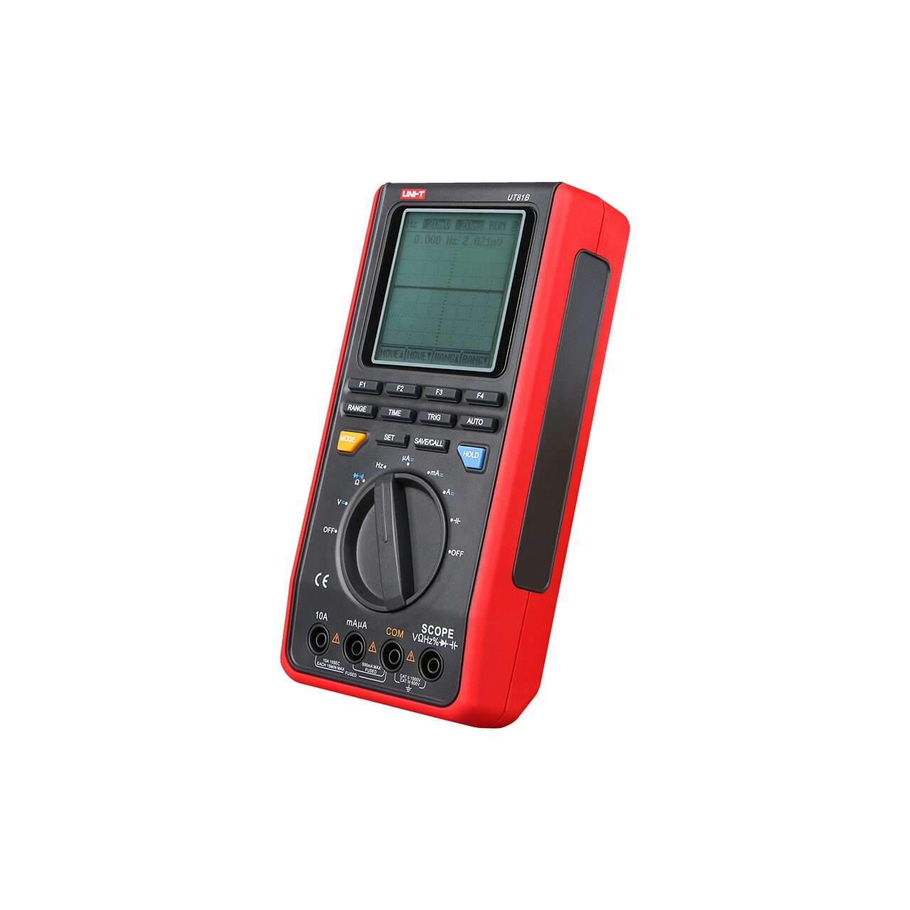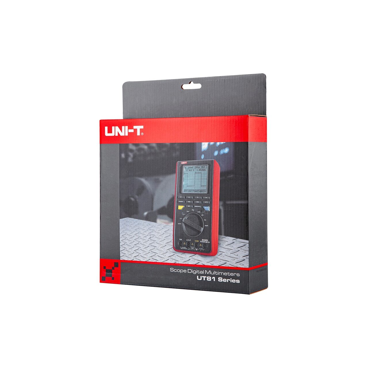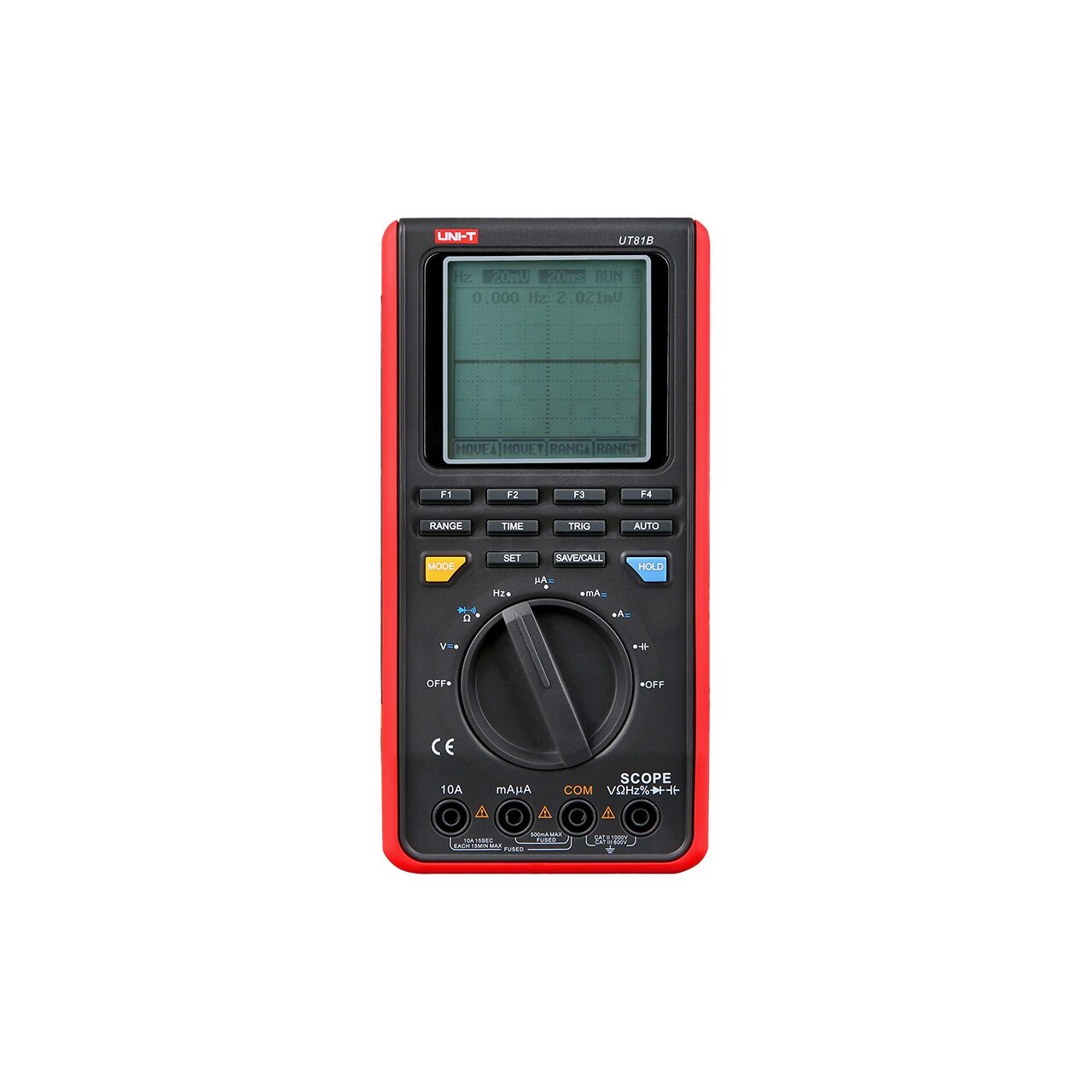Multimetru digital, tip UT 81B, cu functie de osciloscop. Marimi masurate - Tensiune DC: 400mV/4V/40V/400V/1000V - Tensiune AC: 4V/40V/400V/750V - Curent DC: 400mA / 4000mA/40mA/400mA/4A/10A - Curent AC: 400mA/4000mA/40mA/400mA/4A/10A - Rezistenta: 400 ohm/4 kohm/40 kohm/ 400kohm/ 4Mohm/ 40Mohm - Capacitate: 40nF / 400nF/4mF/40mF/100mF - Frecventa: 10Hz ... 10MHz - Rezolutia ecranului: 160x160 pixeli - Factor de umplere: 0,1% ... 99,9% Alte caracteristici: - Testare diode - Masurare continuitate - Memorie 10 ecrane - Contrast si setari luminozitate - Mod Sleep - Indicator de baterie descarcata - Iluminare din spate - USB - Alimentare: 4 baterii 1.5V (R6) - Dimensiuni ecran LCD: 60 x 60 mm - Dimensiuni: 200 x 100 x 48 mm