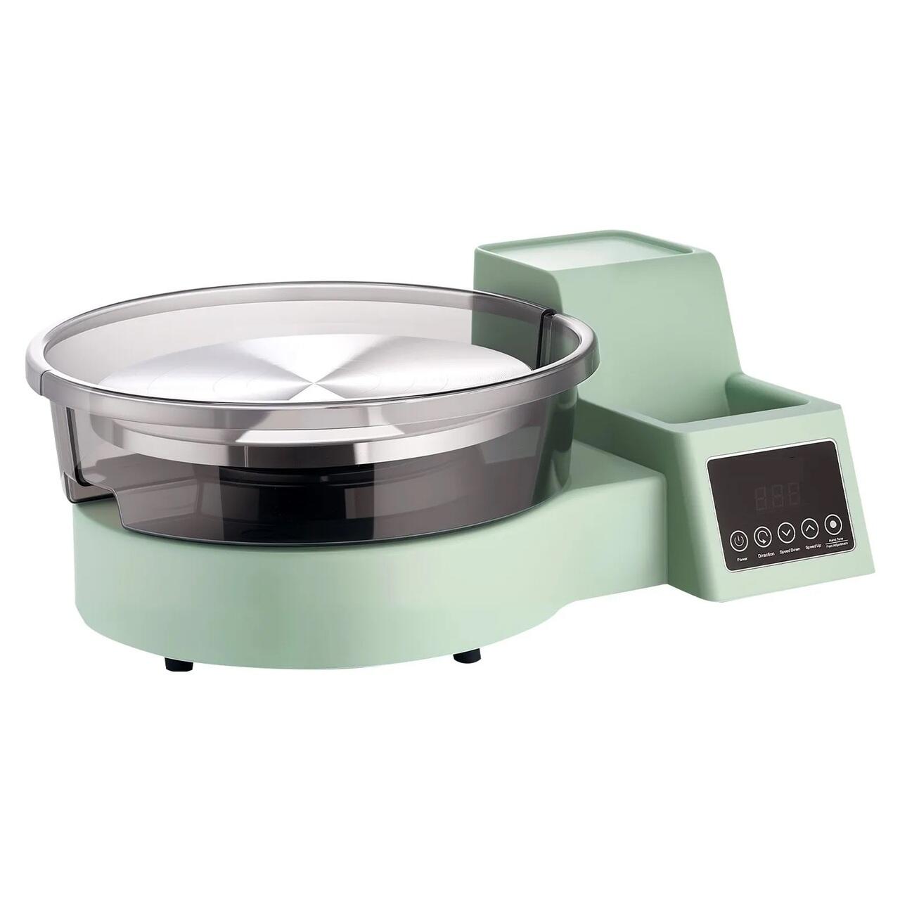 Roata de olarit profesionala electrica, Diametru platan 28 cm, pedala si Ecran tactil, 450 W, viteza reglabila 30-300 rpm, bazin detasabil, verde