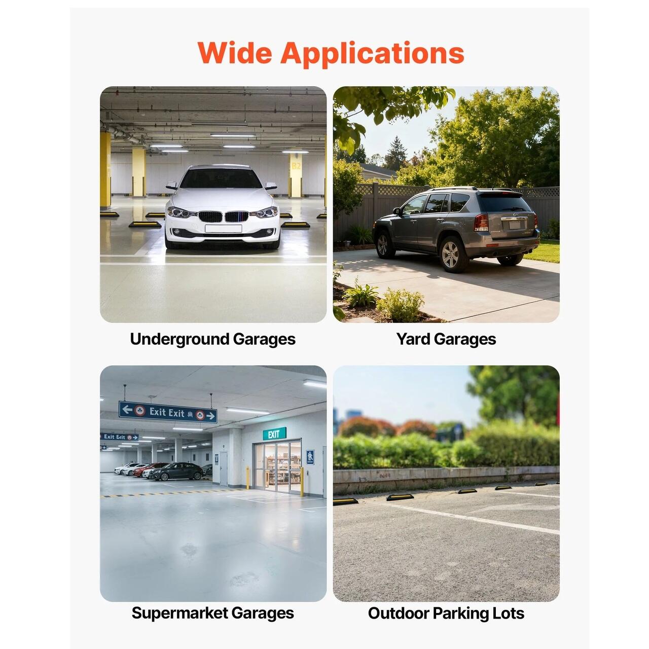 Aplicatii largi: Opritorul nostru de parcare este potrivit pentru garaje subterane, garaje din curti, garaje din supermarketuri si parcari exterioare. Fie ca este in interior sau in exterior, acesta protejeaza vehiculul dumneavoastra de deteriorare, satisfacand diverse nevoi de parcare.