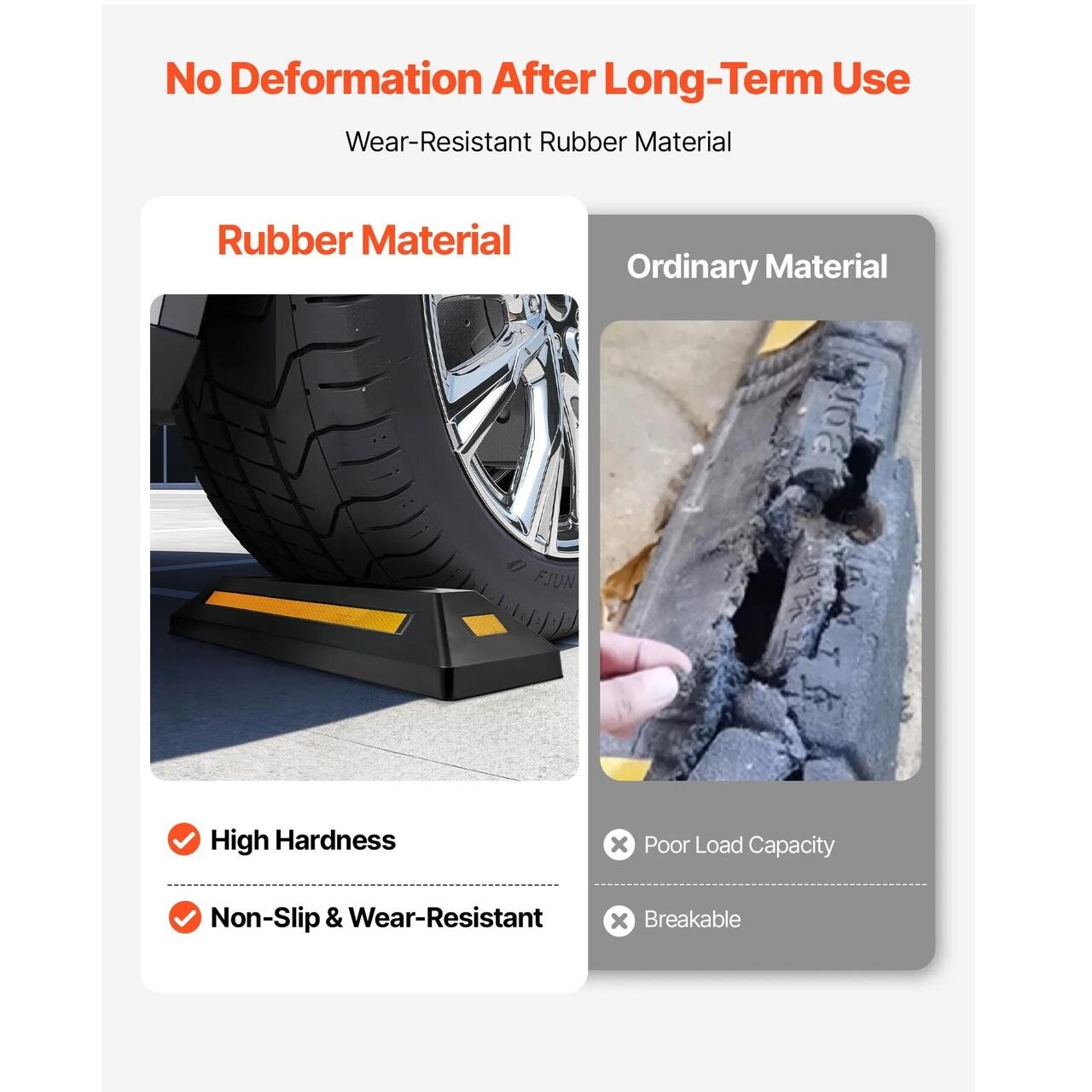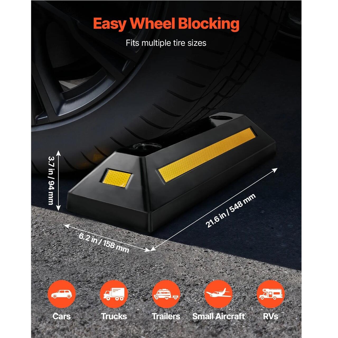 Parcare usoara: Opritoarele noastre de parcare din doua piese masoara aproximativ 55,6 x 16,2 x 9,4 cm, potrivite pentru masini, camioane, remorci, rulote si chiar anvelope pentru avioane mici. Ajuta la parcarea usoara, evitand coliziunile si protejand vehiculul de deteriorare.