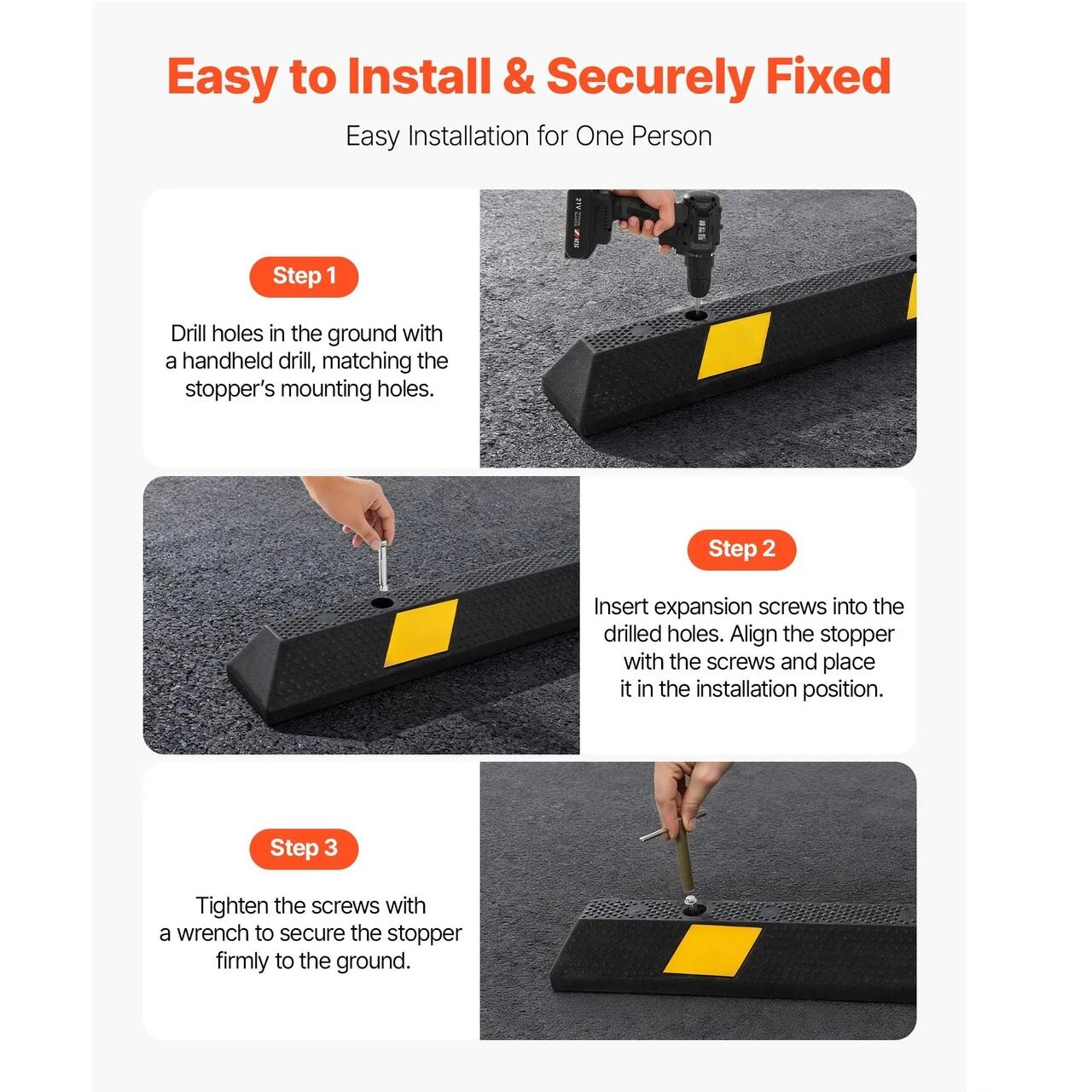 Instalare usoara: Acest bloc de parcare include un pachet de suruburi si gauri prestabilite pentru o instalare usoara, fara a necesita unelte complicate sau ajutor suplimentar. O singura persoana poate finaliza rapid instalarea.