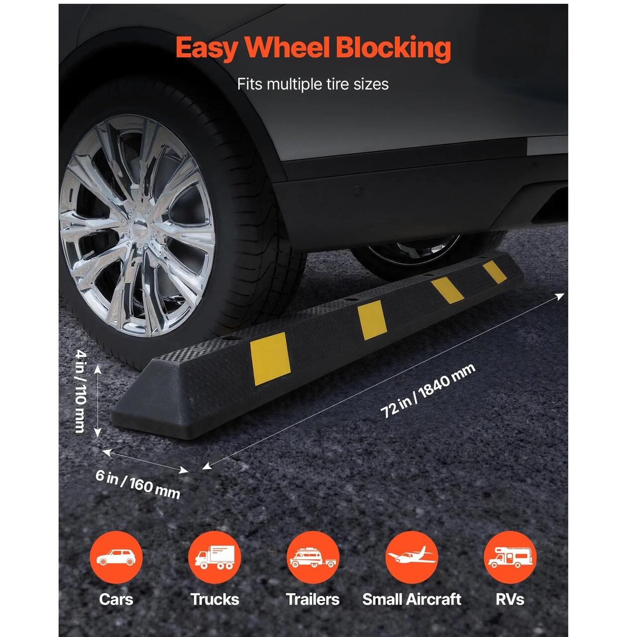 Parcare usoara: 2 x Opritorul nostru de parcare dintr-o singura piesa masoara aproximativ 183 x 15 x 10 cm, potrivit pentru masini, camioane, remorci, rulote si chiar anvelope pentru avioane mici. Ajuta la parcarea usoara, evitand coliziunile si protejand vehiculul de deteriorare.