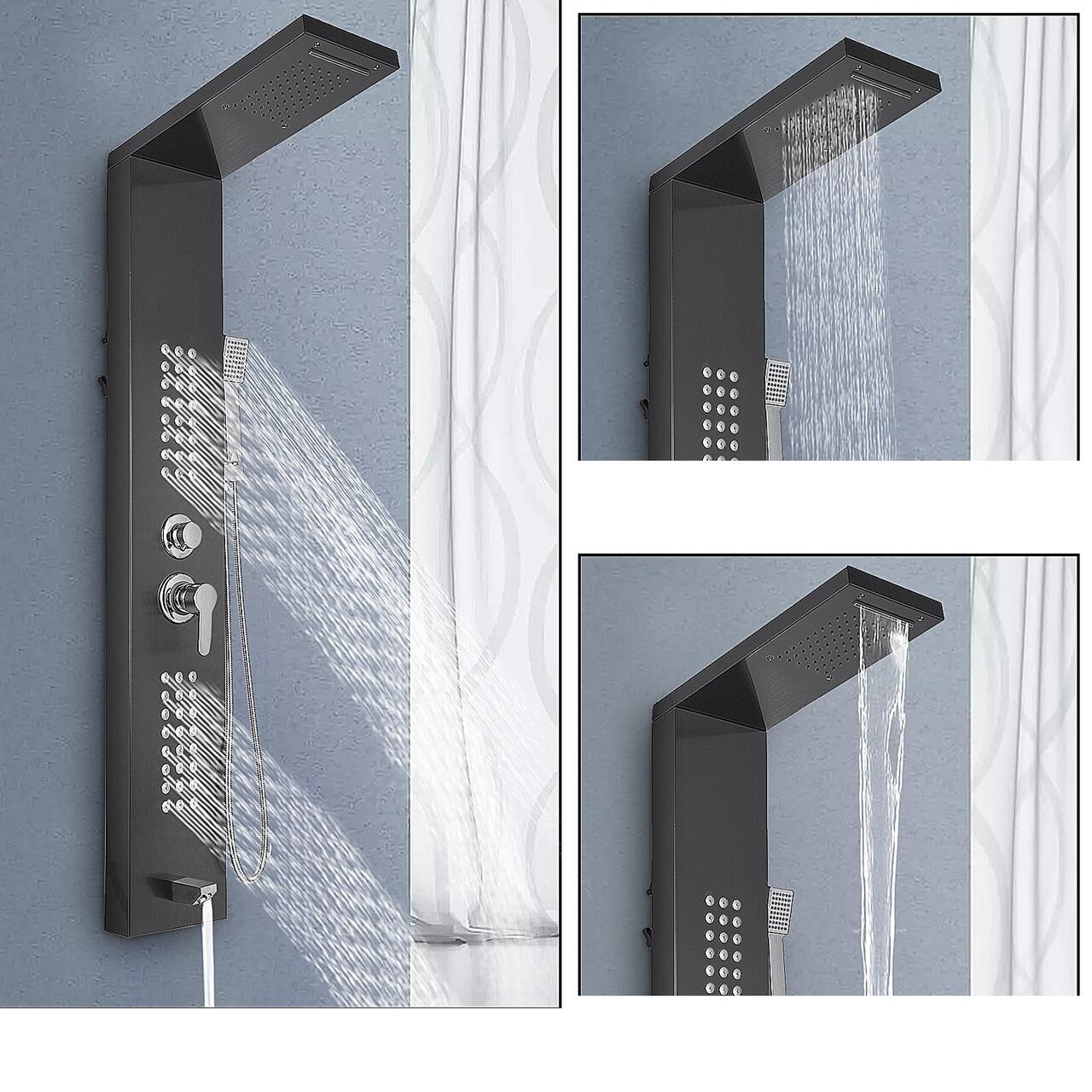 Culoarea neagra face ca acest sistem de panouri de dus de perete sa arate de ultima generatie in camera sau in locuri comerciale. Potrivit pentru remodelarea baii, hoteluri, statiuni, apartamente pentru a imbunatati gustul camerei si pentru a va bucura de un dus confortabil dupa o zi lunga de munca.