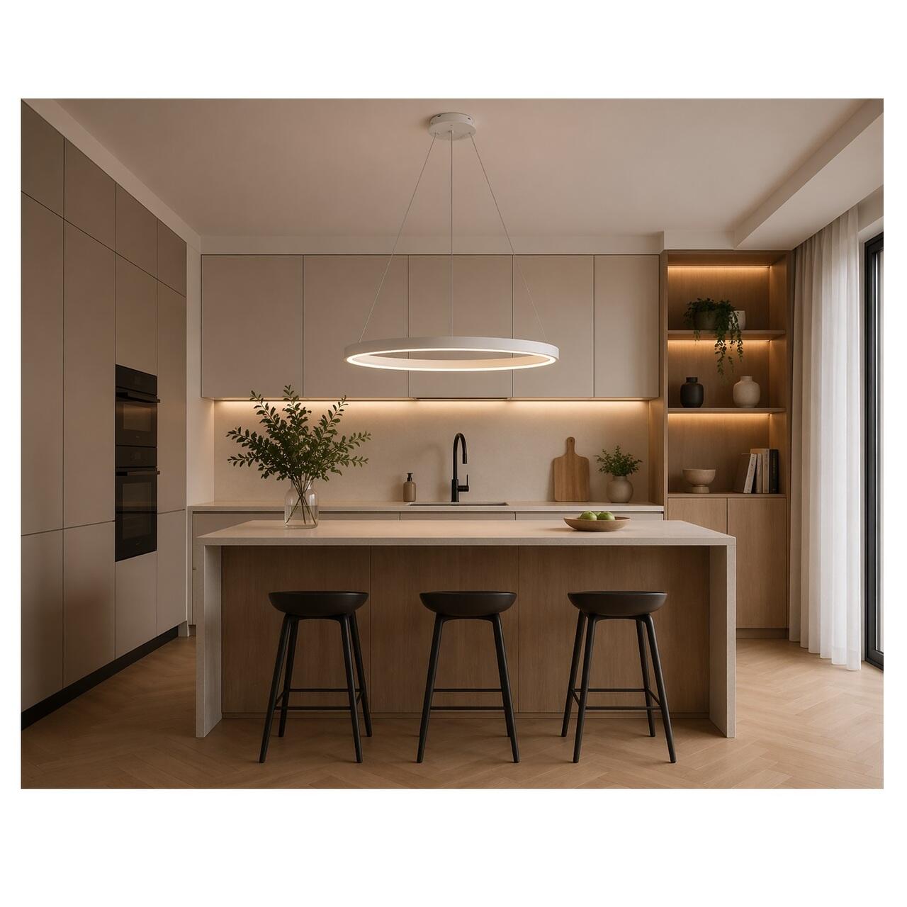 Pendul led 140 W 3CCT, 9800 lm, Alb, dimabila, telecomanda, 100x80 cm
