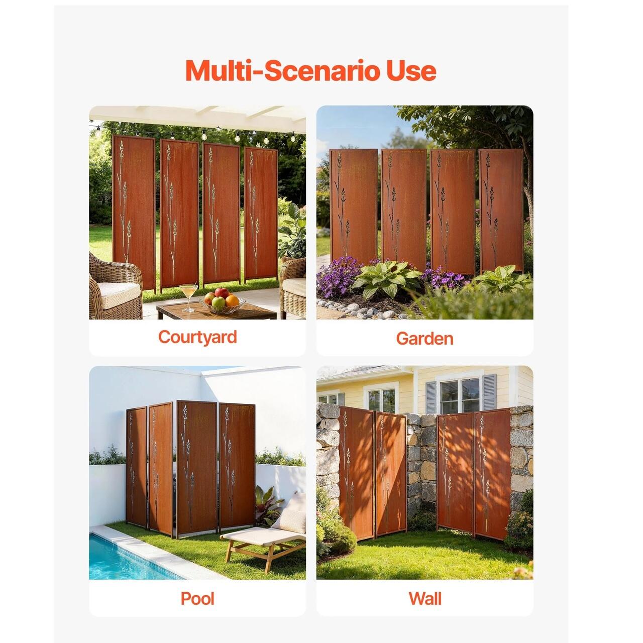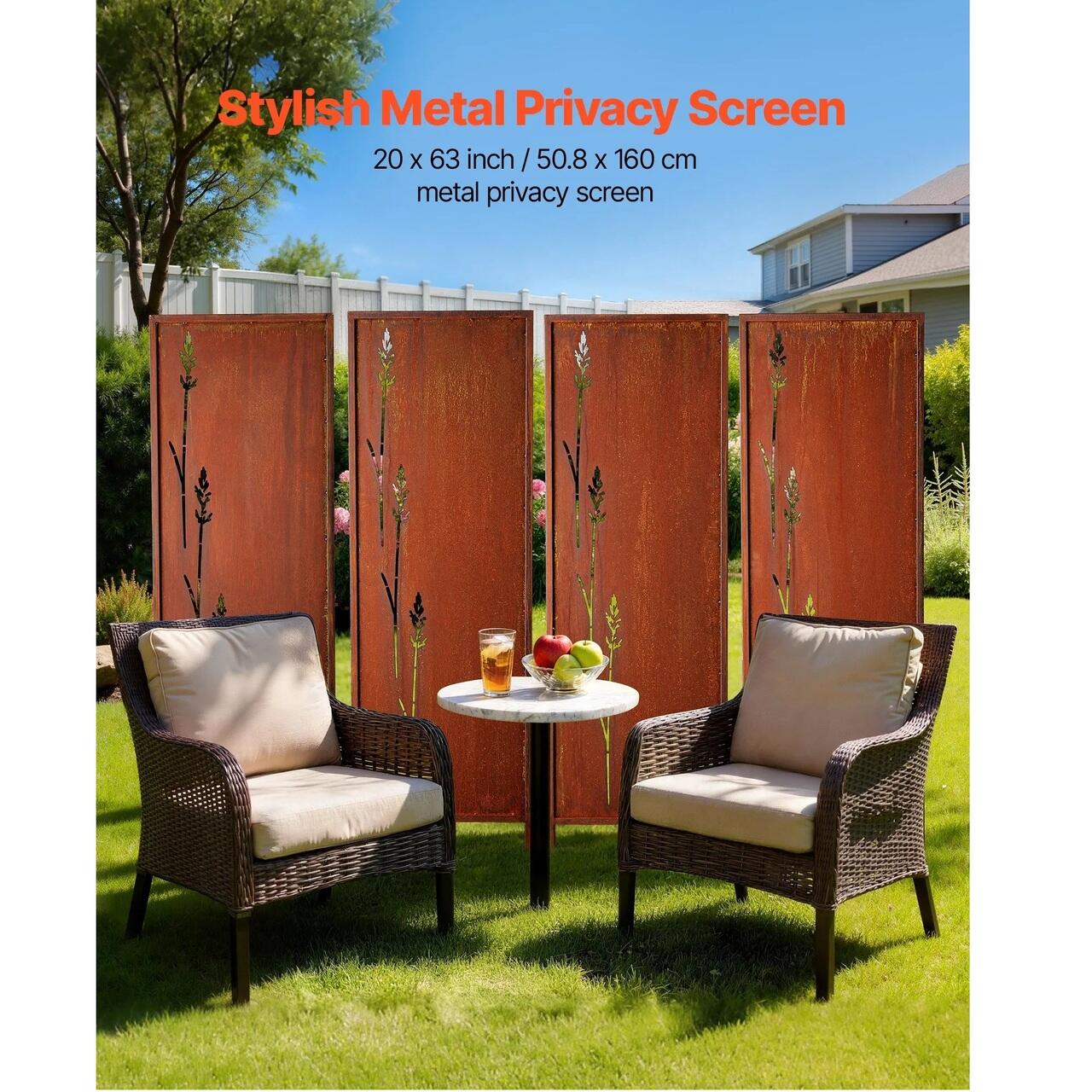 Set 4 x Paravan confidentialitate pentru gradina/casa, Otel, 50x160 cm, Exterior/Interior, ruginiu