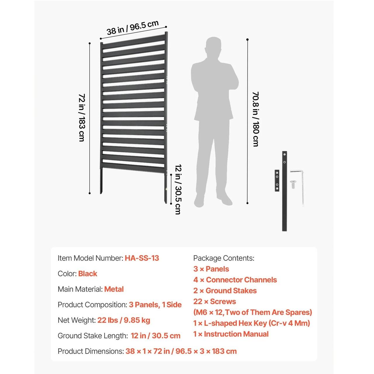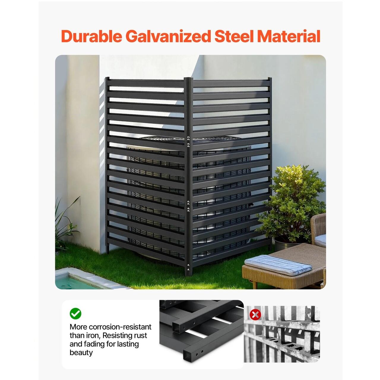 Constructie metalica durabila: Acest paravan de intimitate pentru exterior este fabricat dintr-un material metalic durabil, oferind o utilizare mai lunga decat capacele din lemn sau plastic. Suprafata galvanizata ajuta la limitarea contactului cu apa de ploaie, reducand uzura suprafetei si sustinand performante fiabile pentru amplasarea in exterior pe termen lung.