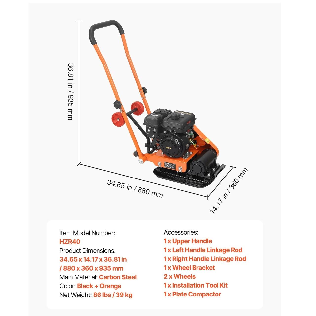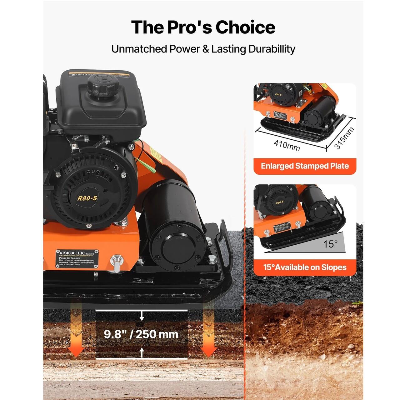 Motor puternic: Placa noastra compactoare de inalta performanta dispune de un motor puternic care va ajuta sa va finalizati lucrarea cu usurinta. Motorul pe benzina de 2,0 CP ofera pana la 5.250 de vibratii pe minut, iar adancimea de compactare de 9,8 inci asigura rezultate optime de compactare.
