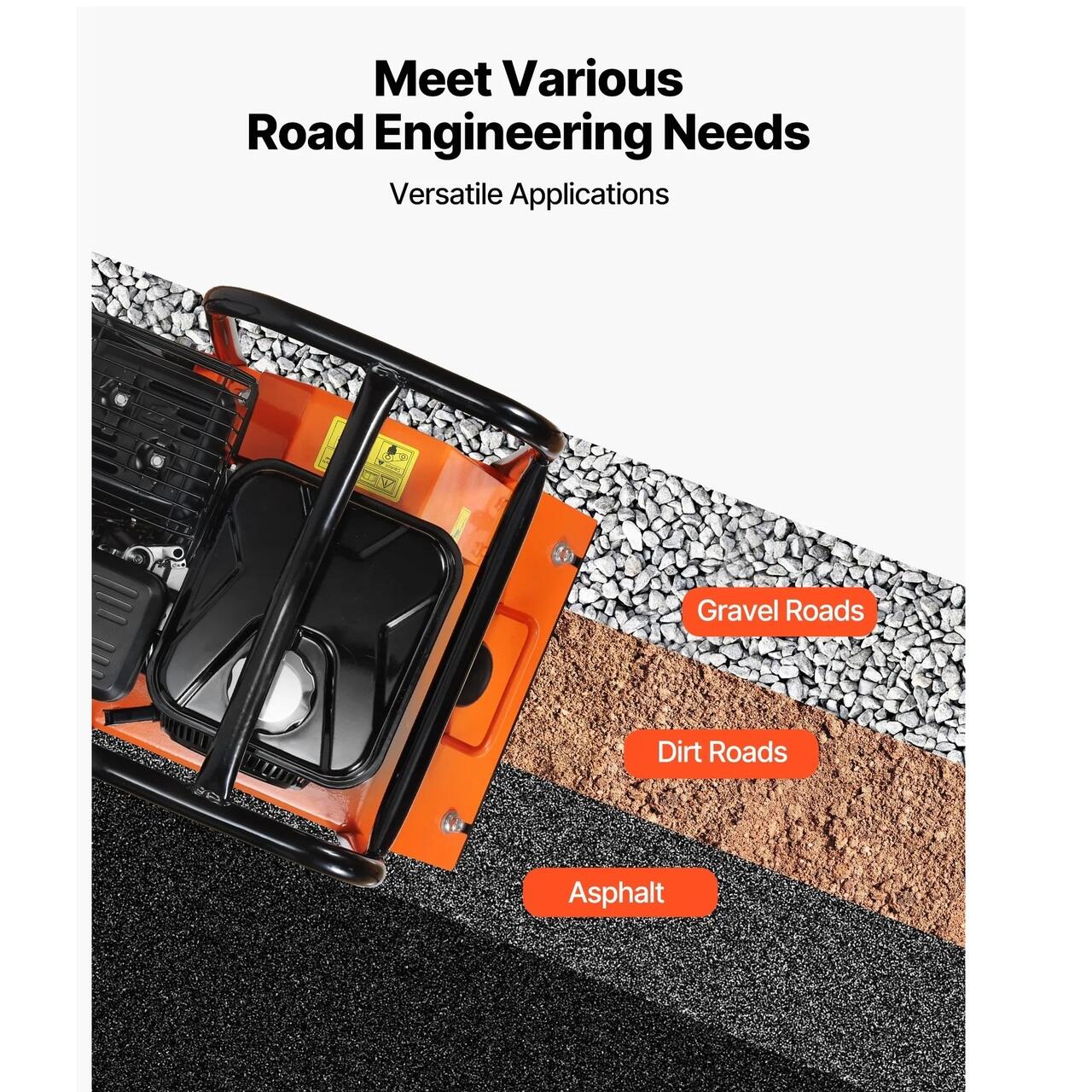Constructie robusta: Motorul acestui compactor profesional poate atinge o viteza de 6400 RPM, ajutandu-va sa compactati rapid terenul. Placa groasa de compactare poate rezista mult timp. Emisii reduse de gaze pentru o atmosfera mai curata.
