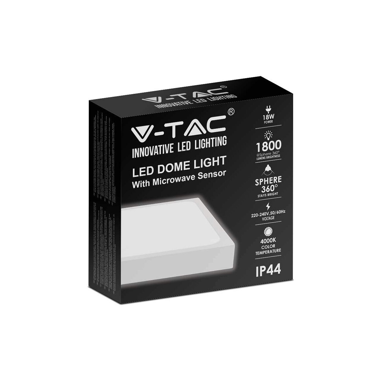 Plafoniera patrata cu senzor de miscare, 18W, lumina neutra 4000K, IP44, 1800 lm, 225x225 mm