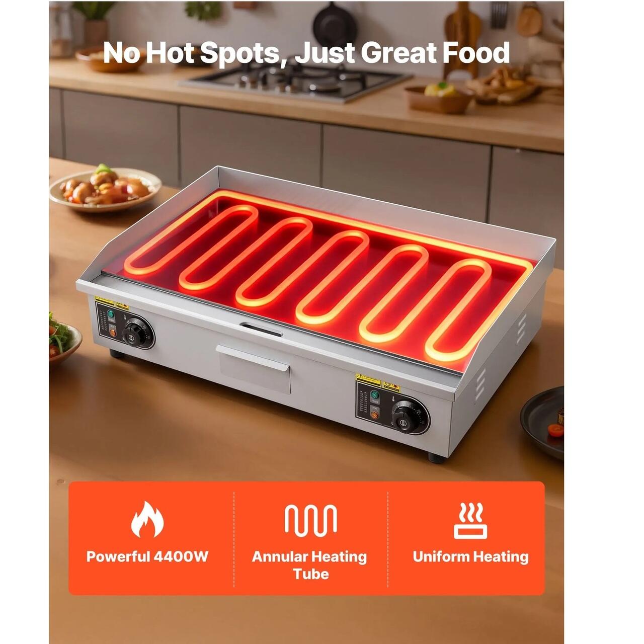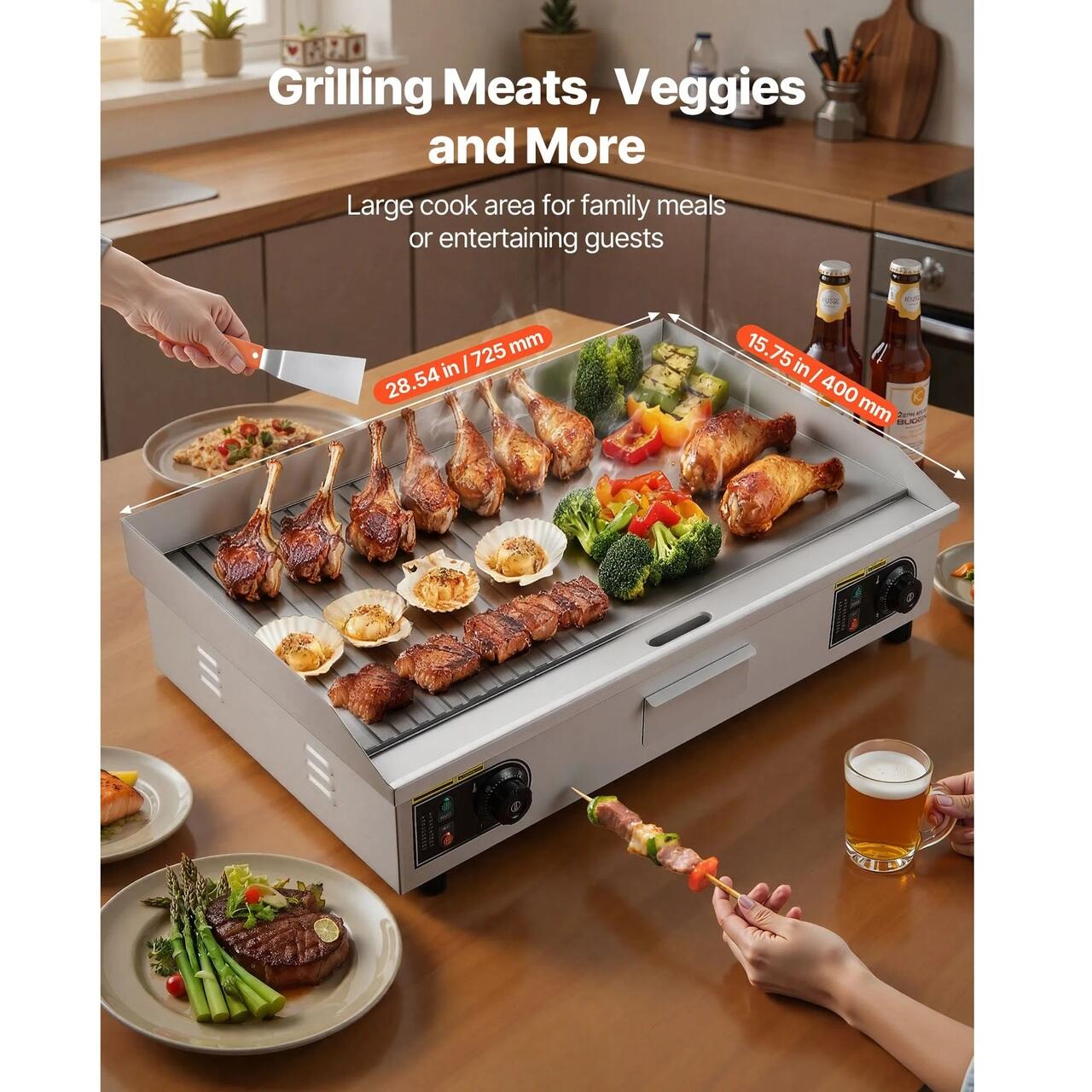 Pentru diverse mancaruri si ocazii: Acest gratar comercial este ideal pentru uz casnic sau comercial, cum ar fi restaurante, magazine si tarabe cu mancare. Este potrivit pentru clatite, bacon, branza, omlete, pizza, friptura si burgeri.