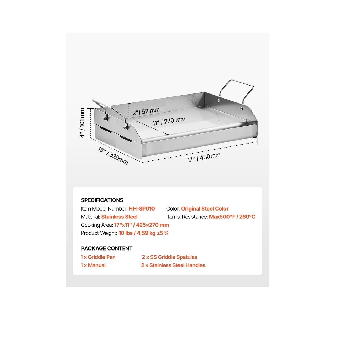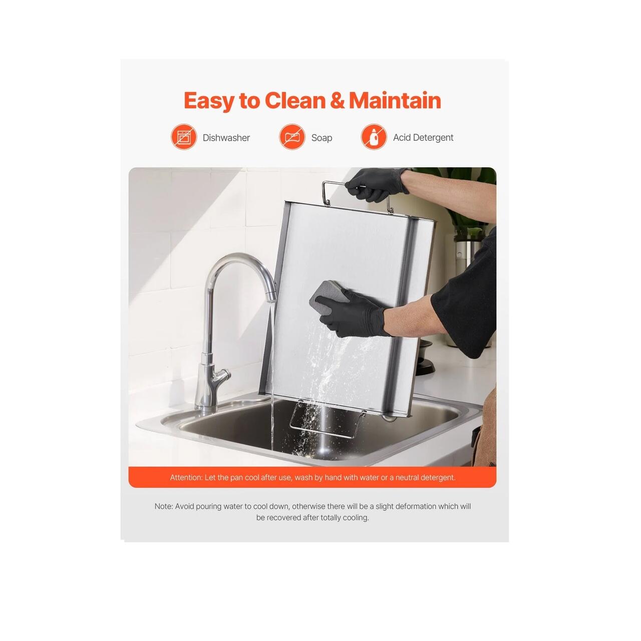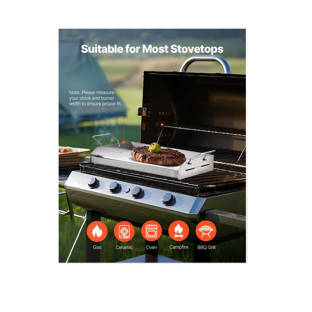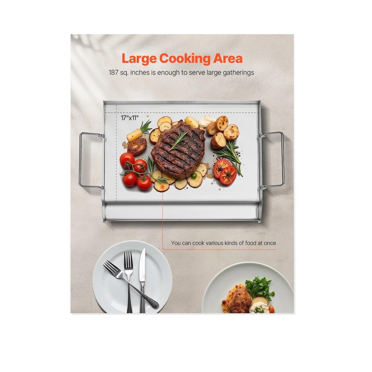 Otel inoxidabil de calitate: Fabricata din otel inoxidabil durabil, aceasta plita pentru gratar pe gaz poate suporta temperaturi de pana la 260°C oferindu-va libertatea de a gati la foc mare. Ranforsarea inferioara in forma de X rezista la deformare.