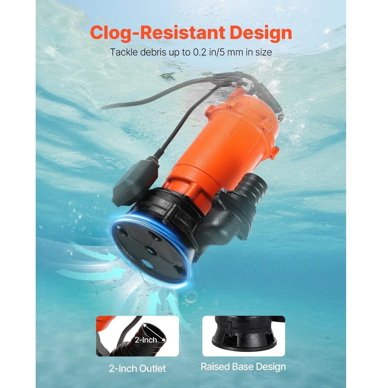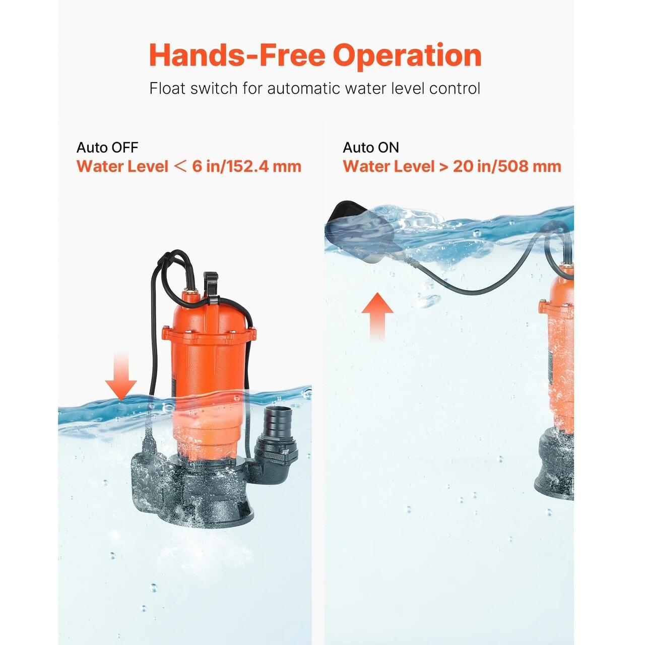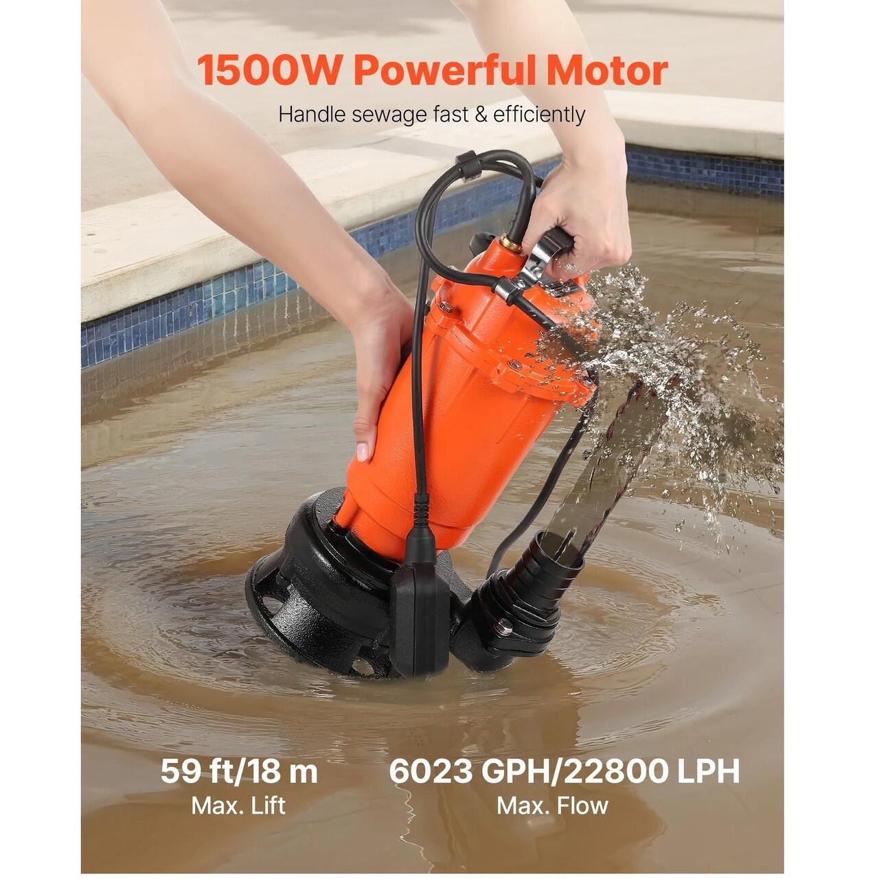 Drenaj rapid si eficient: Echipata cu un motor robust de 1500 W (2 CP), aceasta pompa submersibila pentru deseuri furnizeaza pana la 22.800 L/h si atinge o inaltime maxima de ridicare de 18 m (59 ft), asigurand drenajul rapid si eficient al apelor uzate.