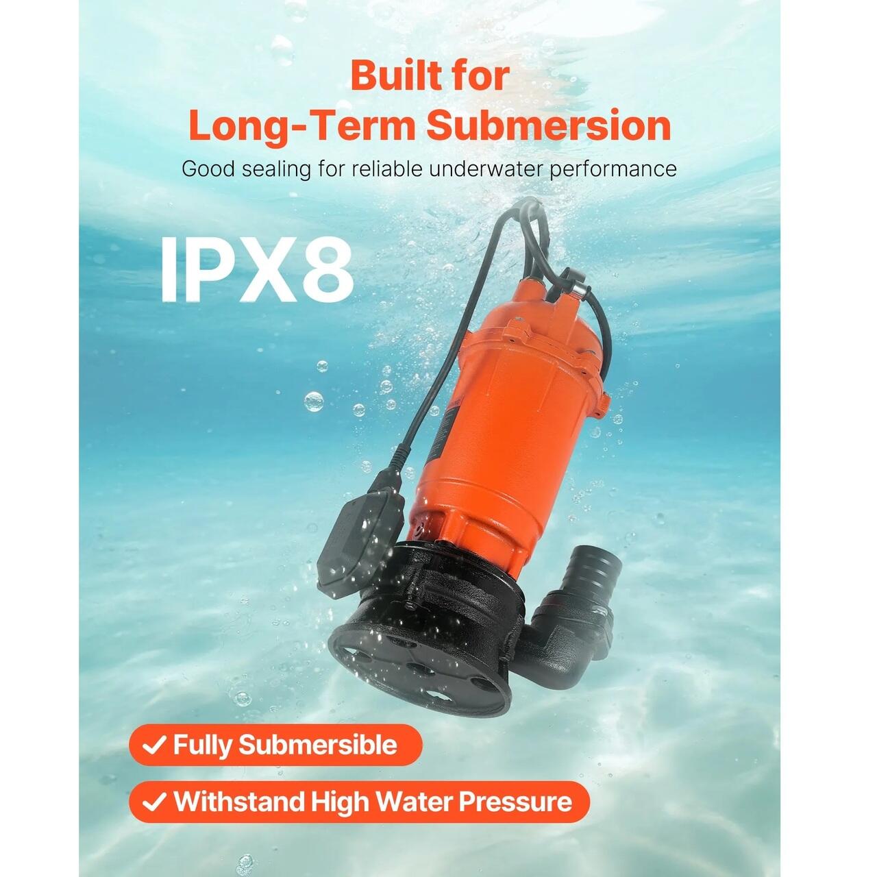 Performanta excelenta de etansare: Construita din fier de inalta rezistenta, pompa submersibila ofera protectie impermeabila IPX8 pentru a asigura performante de submersibilitate de inalta etansare. Este pregatita sa faca fata conditiilor subacvatice de inalta presiune pentru perioade lungi de timp.