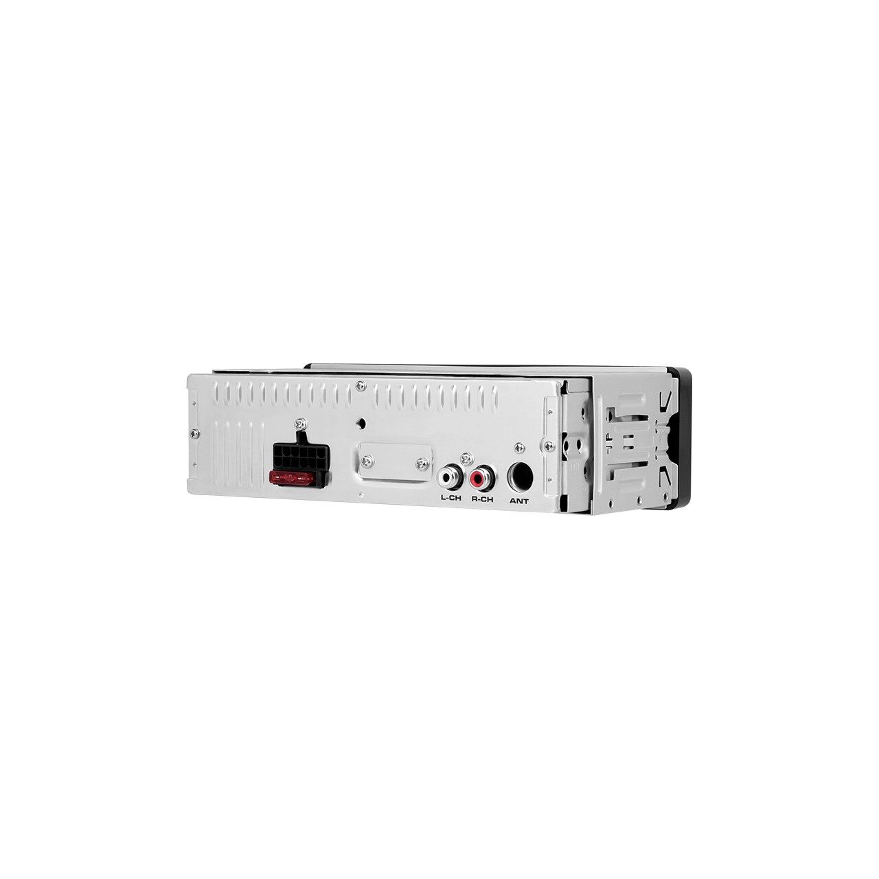 Parametrii tehnici • Putere maximă: 4 x 20 W • Raport Semnal/Zgomot (S/N): 50 dB • Separare canal: 50 dB • Răspuns în frecvență: 20 Hz-20 kHz • Alimentare: 14,4 V DC Caracteristici principale • Intrari: USB, SD/MMC, AUX • Formate acceptate: MP3 • Dimensiune: 1 DIN • Panou: detașabil • Egalizator: Pop/Rock/Classic/Flat • Control ton: - Bass (100 Hz): +/- 7 dB - Înalte (10 kHz): +/- 7 dB • Funcție loudness: da • Ecran LCD: lumină de fundal albastru • Lumină de fundal pentru taste: albastru • Bluetooth: da • Gestionare apeluri: da Tuner radio analogic • Domeniu frecvență FM: 87,5 – 108 Mhz • Domeniu frecvență AM: 522 – 1620 kHz • Memorare canale FM: 18 • Memorare canale AM: 12 • Căutare frecvență: automată / manuală • Separare stereo: >50 dB Intrări/Ieșiri • Port USB: 2.0 (capacitate max. 16 GB) • Citior card de memorie: card SD standard (capacitate max. 16 GB, clasa 10) • Mufă AUX: Jack 3,5 mm • Ieșire RCA: 4 x RCA de impedanță redusă la 1,2 V Setul include • Unitate principală • Panou • Cabluri cu cuplă ISO • Telecomandă • Suport pentru montare • Ramă • Accesorii pentru montare