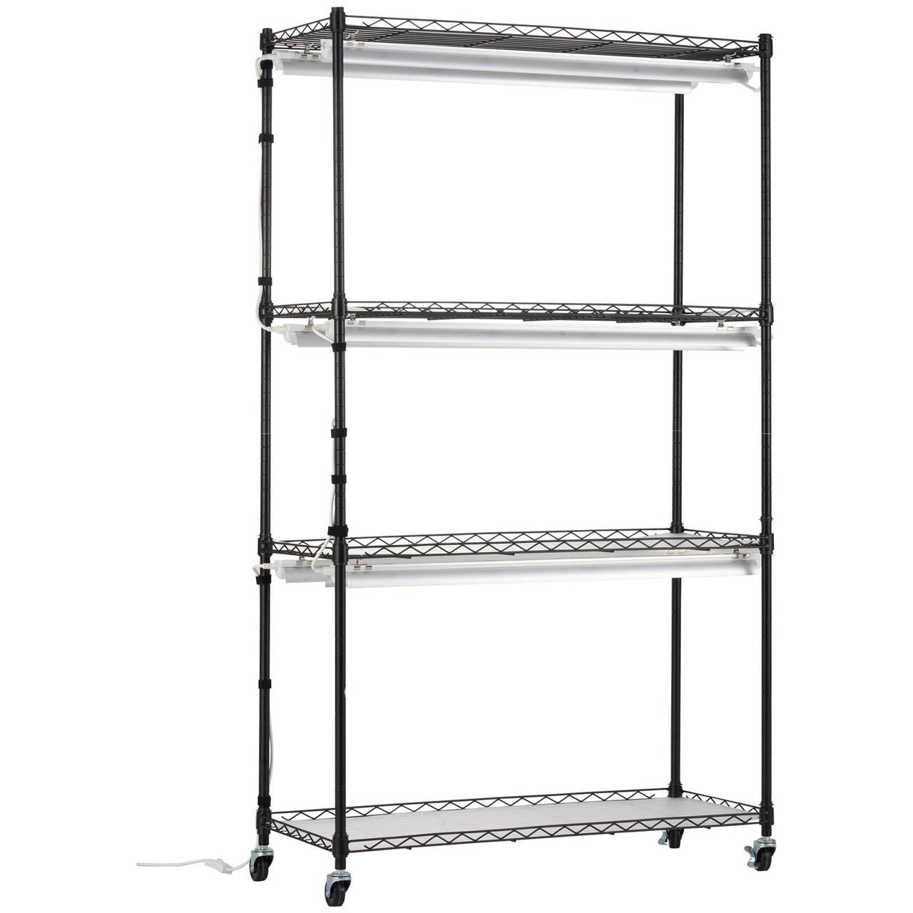 Suport pentru plante cu lampa de crestere 4 x Niveluri, Inaltime 146 cm, 6 x led 180 W, temporizator, 4 x roti
