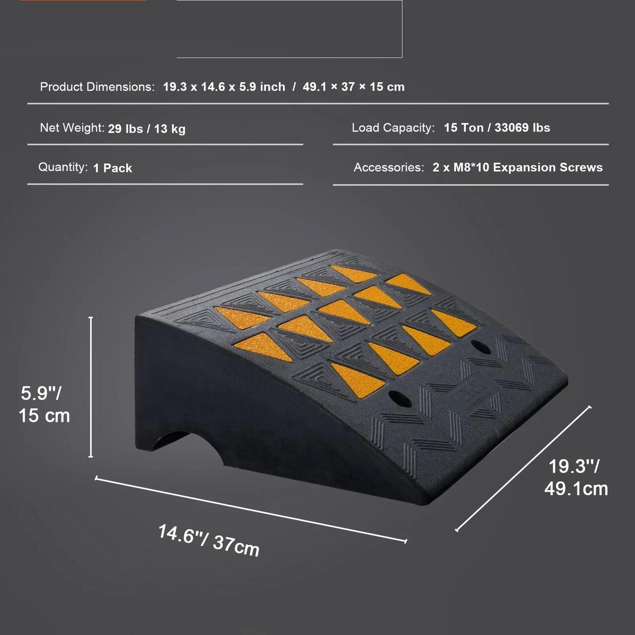 Capacitate portanta de 15600 kg: Rampa de bordura din cauciuc va ofera o tranzitie lina si stabila pe panta, cu o capacitate portanta extrem de puternica de pana la 15 tone. Partea inferioara adopta un design cu grila pentru a consolida capacitatile de compresie si absorbtie a socurilor. O puteti utiliza pentru urcarea in panta a masinilor, carucioarelor, carucioarelor pentru copii, scaunelor cu rotile etc.