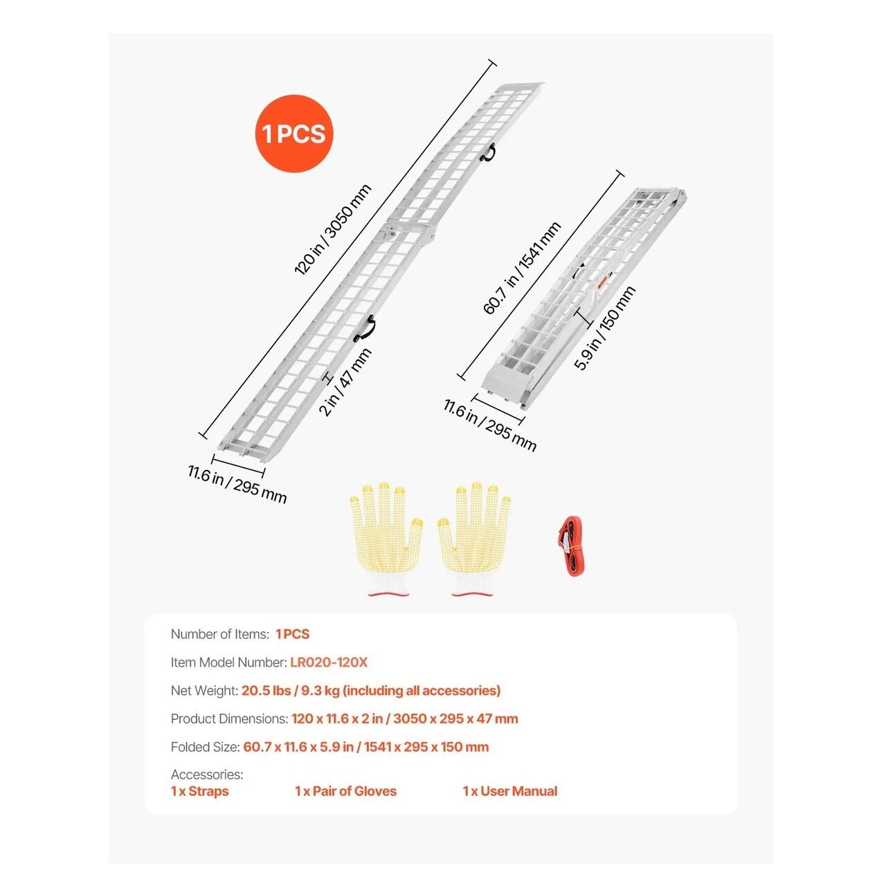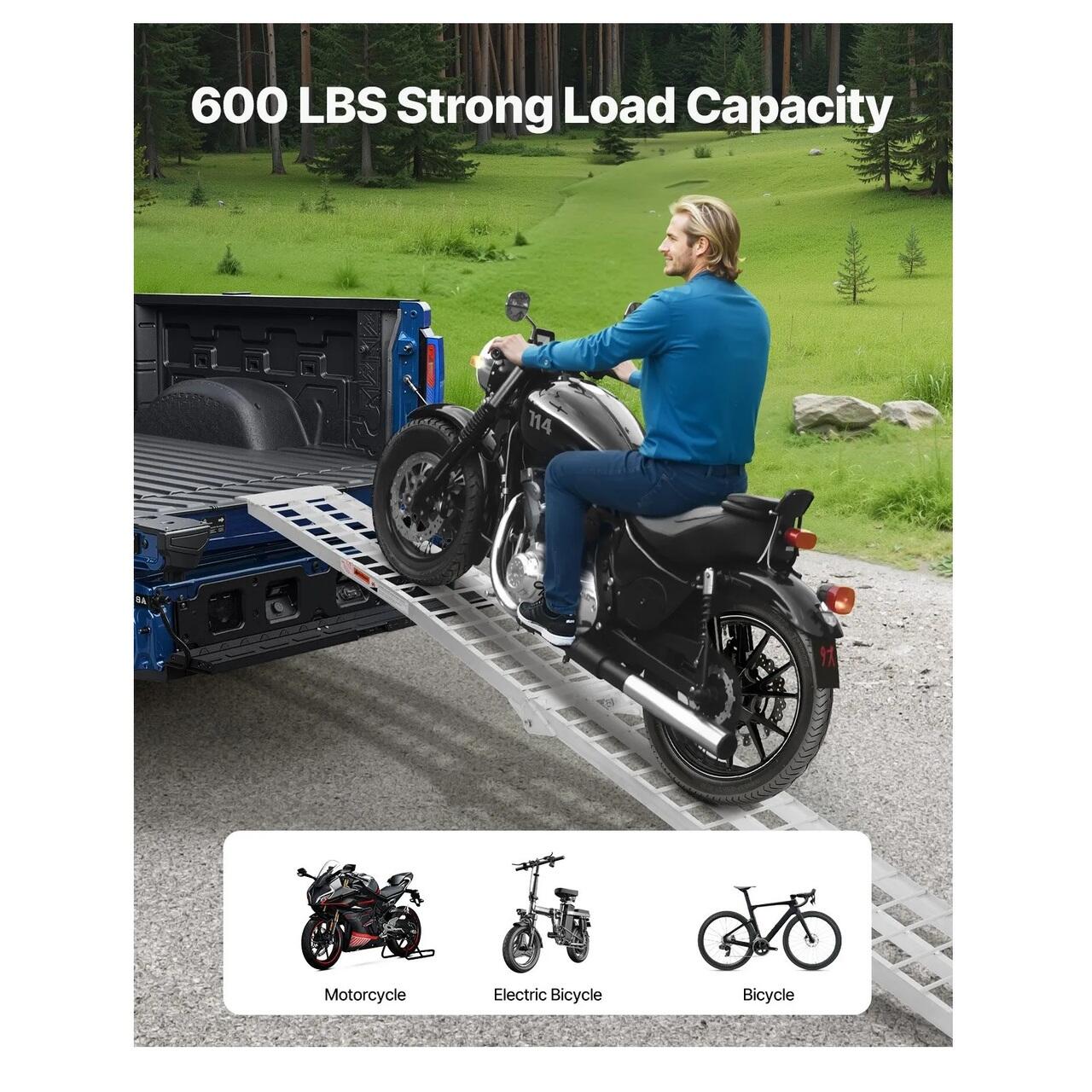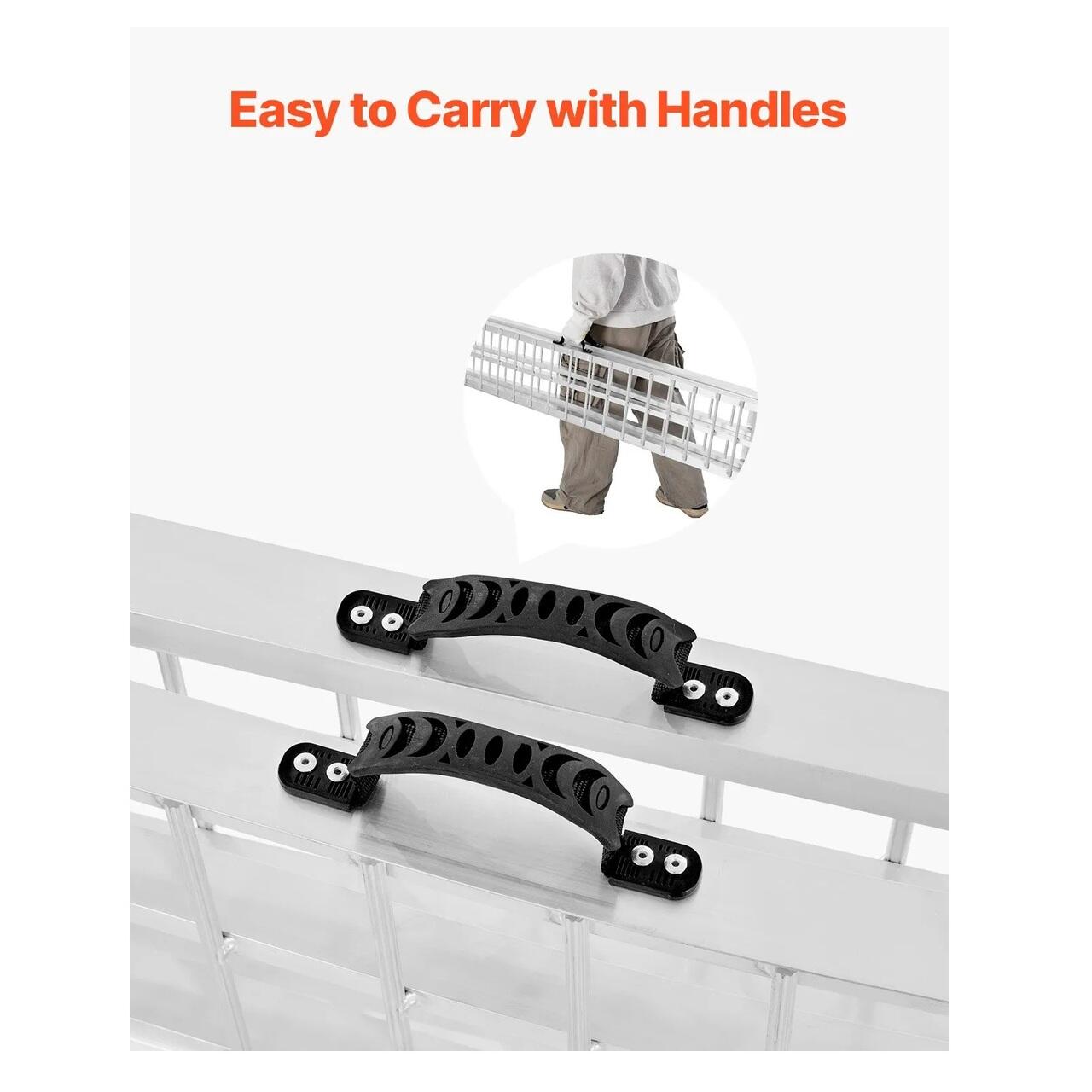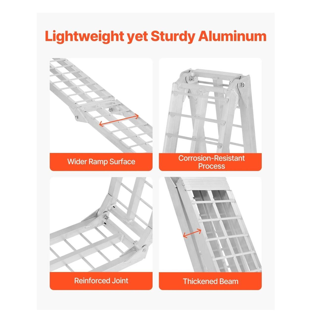 Capacitate de incarcare de 273 kg: Cu o capacitate de incarcare de pana la 273 kg, aceasta rampa arcuita ofera un echilibru ideal intre rezistenta si portabilitate. Designul cu o singura rampa este ideal pentru transportul motocicletelor, scuterelor electrice, bicicletelor si multe altele.