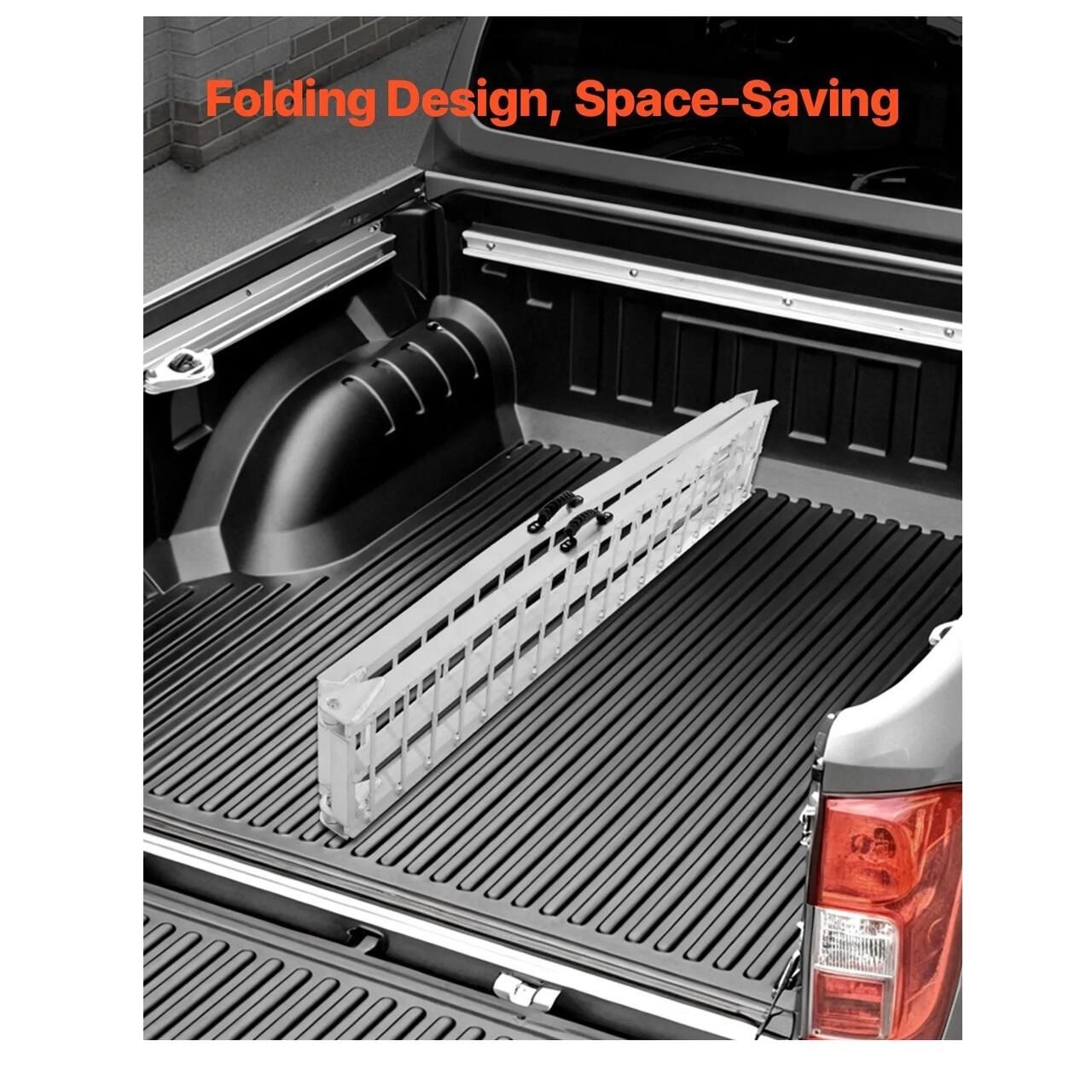 Design pliabil rapid: Rampa se pliaza si se depliaza in 1 secunda, avand articulatii triunghiulare intarite pentru o functionare lina. Un maner de cauciuc o face usor de transportat, iar designul sau compact se potriveste convenabil in garaje sau portbagajele masinii, fara a ocupa mult spatiu.