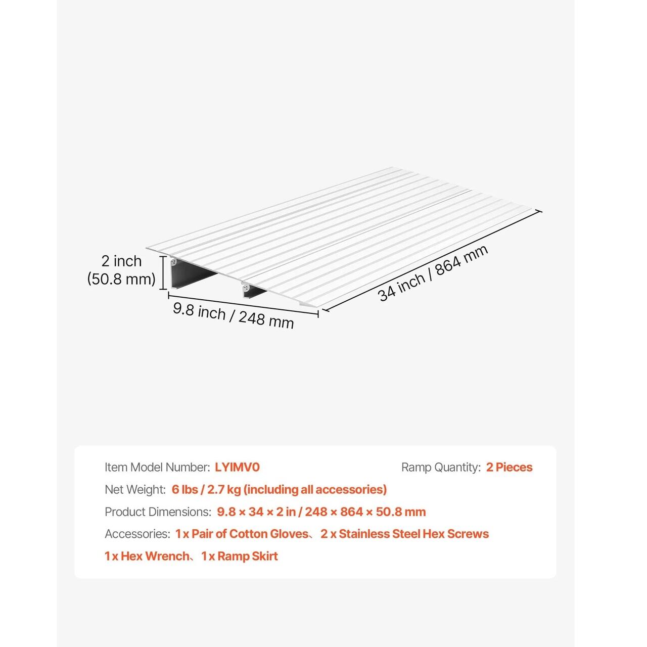 Acces facil: Aceasta rampa de prag (29 cm latime x 86 cm lungime x 5 cm inaltime) faciliteaza trecerea pragurilor si a bordurilor. Scaunele cu rotile, trotinetele, carucioarele sau bicicletele se rostogolesc lin, fara denivelari.