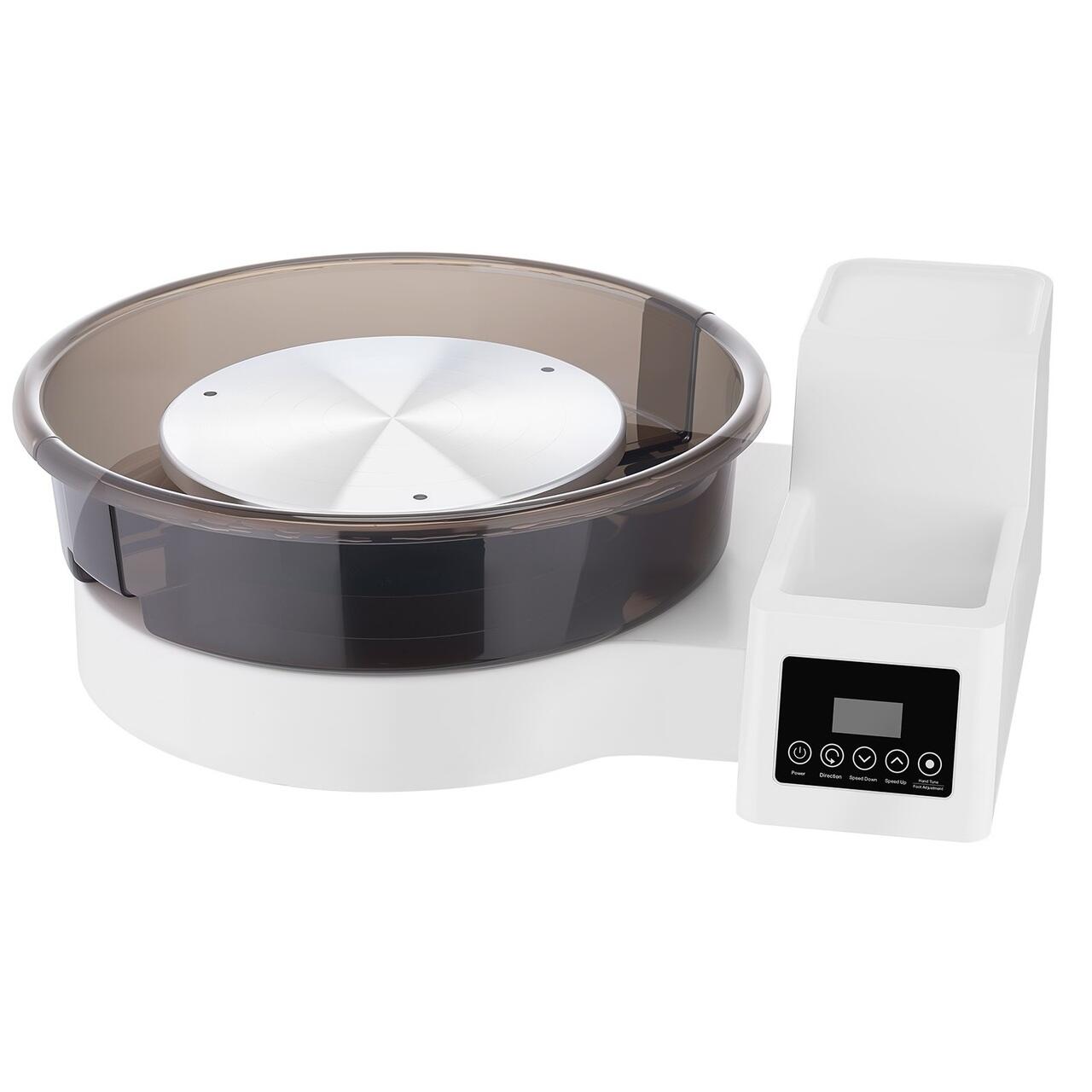 Spatiu de lucru spatios si robust: Ideal pentru incepatorii care tintesc sus, aceasta roata de olar dispune de platouri rotative de 11" si 14" pentru un spatiu amplu de modelare. Motorul de 450 W ofera o putere constanta, manipuland pana la 11 lbs de lut pentru rezultate fine, de calitate profesionala.
